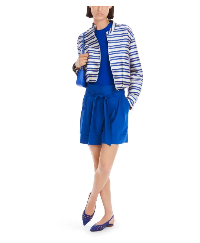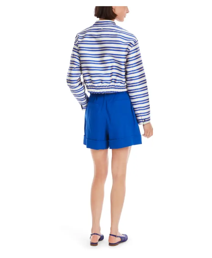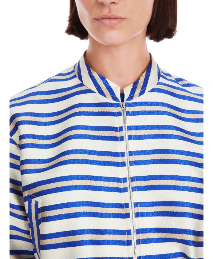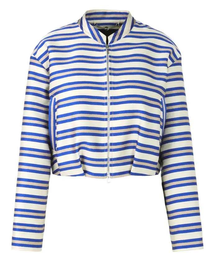 Добавьте ярких красок в свой гардероб с помощью этой полосатой куртки от Marc Cain. Текстурированная, слегка блестящая ткань подчеркивает дизайн, а эластичный нижний край сзади обеспечивает комфортную посадку. Закатайте рукава для более свободного образа. Куртка имеет воротник-стойку, вертикальные прорезные карманы и двустороннюю застежку-молнию. Свободный крой. Рост модели 179 см, размер N3/38. Изготовлена из 100% полиэстера.