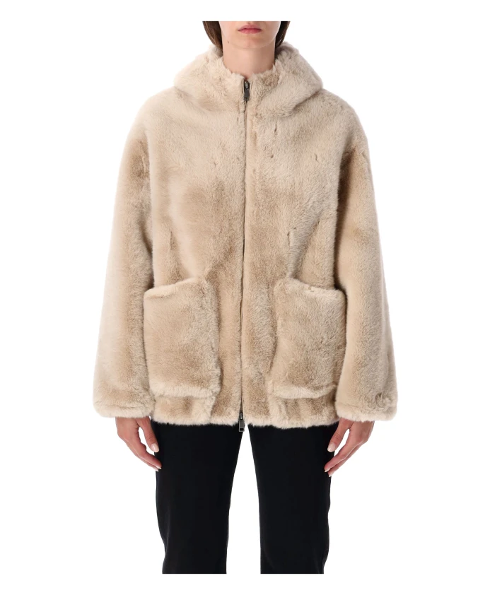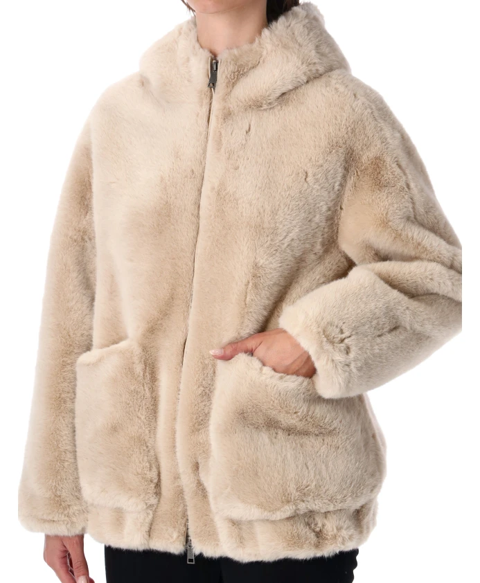 Бежевая куртка-худи из искусственного меха Urbancode, белый