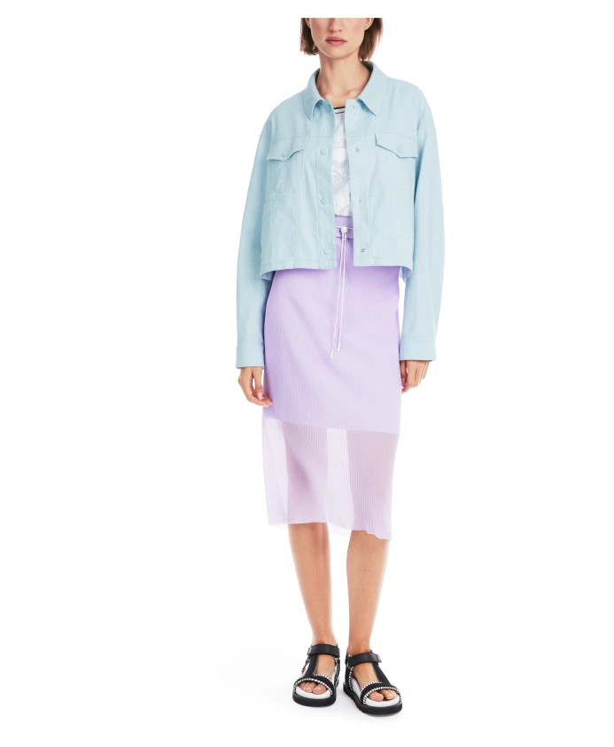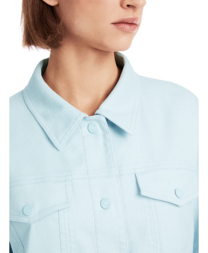 Поднимите свой джинсовый стиль на новый уровень с этой цветной джинсовой курткой Marc Cain. Она имеет двойную строчку, нагрудные накладные карманы и вставки, создающие привлекательный силуэт. Разрез сзади обеспечивает комфорт, а тональные кнопки с логотипом Marc Cain Sport завершают дизайн. Изготовлена из смеси хлопка, льна и эластана для ощущения прохлады. Рост модели 179 см, размер N3/38.