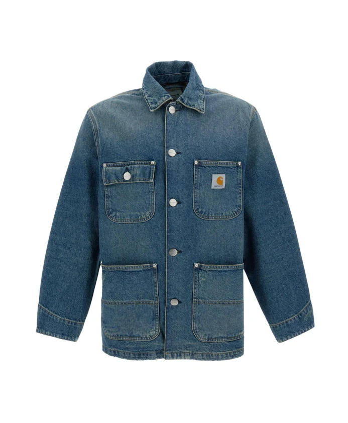 Джинсовая куртка Carhartt Wip с классической застежкой на пуговицы и накладными карманами. Изготовлена из хлопкового денима, подходит для повседневной носки и многослойного ношения. Ключевые особенности: Синий | Светло-синий | Хлопок | Застежка на пуговицы | Накладные карманы на пуговицах | Джинсовая обработка | Накладные передние карманы | Состав и уход: 100% хлопок