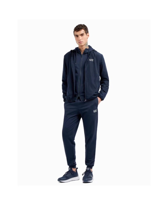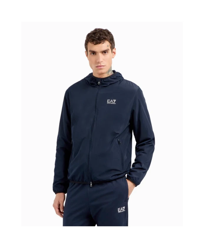 Оставайтесь стильными и чувствуйте себя комфортно в этой легкой мужской куртке от Emporio Armani EA7. Изготовлена из 100% полиэстера с эластичными ребристыми манжетами для идеальной посадки. Имеет несъемный капюшон, застежку на молнию, два боковых кармана и контрастный логотип EA7 на груди. Завершают образ трикотажные манжеты и нижний край для стандартного кроя.