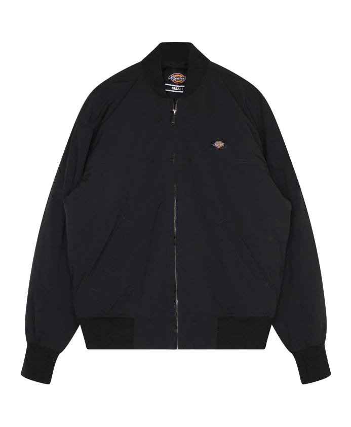 Оставайтесь стильной и сухой в этой черной водоотталкивающей куртке-бомбере от Dickies. Она имеет застежку-молнию спереди, ребристый воротник, манжеты и нижний край, два боковых кармана, карманы на рукавах и внутренний карман. Завершает образ нашивка с логотипом спереди. Изготовлена из 100% полиамида. Код товара: DK0A4YEQ.