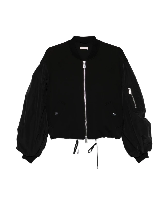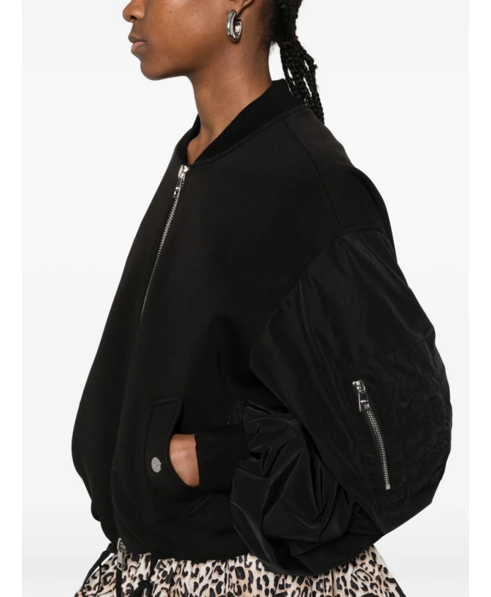 Бомбер Liu Jo с фурнитурой серебристого цвета и боковыми карманами на молнии, с застежкой-молнией спереди и шнурком по низу для регулировки посадки. Ключевые особенности: Черный | Боковые карманы на молнии | Застежка-молния спереди | Шнурок по низу | Фурнитура серебристого цвета | Длинные рукава | Силуэт бомбера