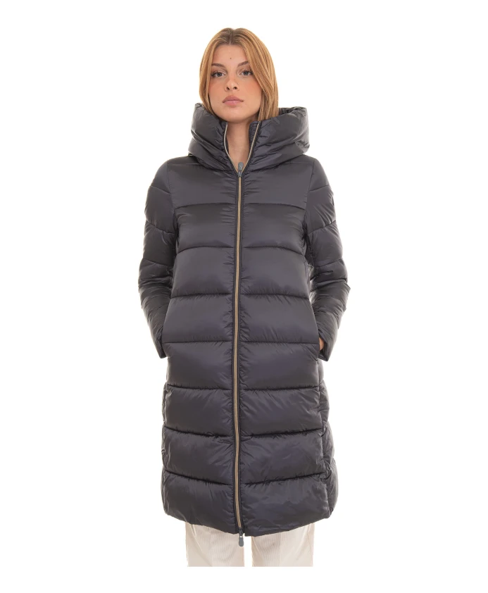 Утепленная длинная куртка с несъемным капюшоном Save The Duck, серый