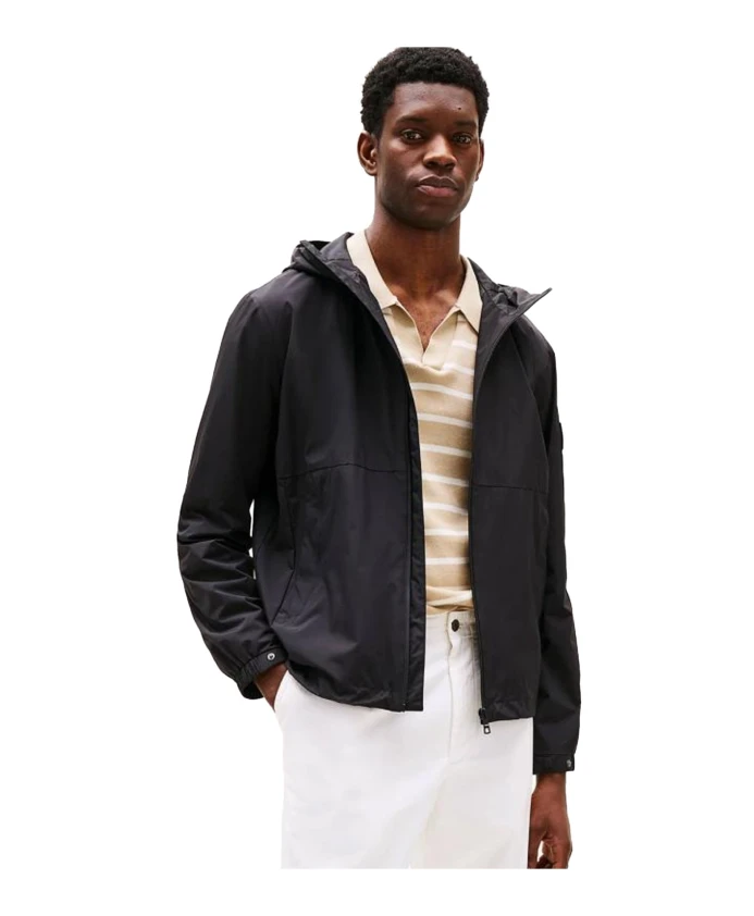 Легкая мужская куртка Tommy Hilfiger черного цвета. Крой: прямой. Воротник: с капюшоном. Рукава: длинные. Логотип: вышитый. Карманы: 2. Застежка: молния. Уход: см. инструкцию на этикетке изделия. Размер: выбирайте свой обычный размер. Материал: 100% полиамид.