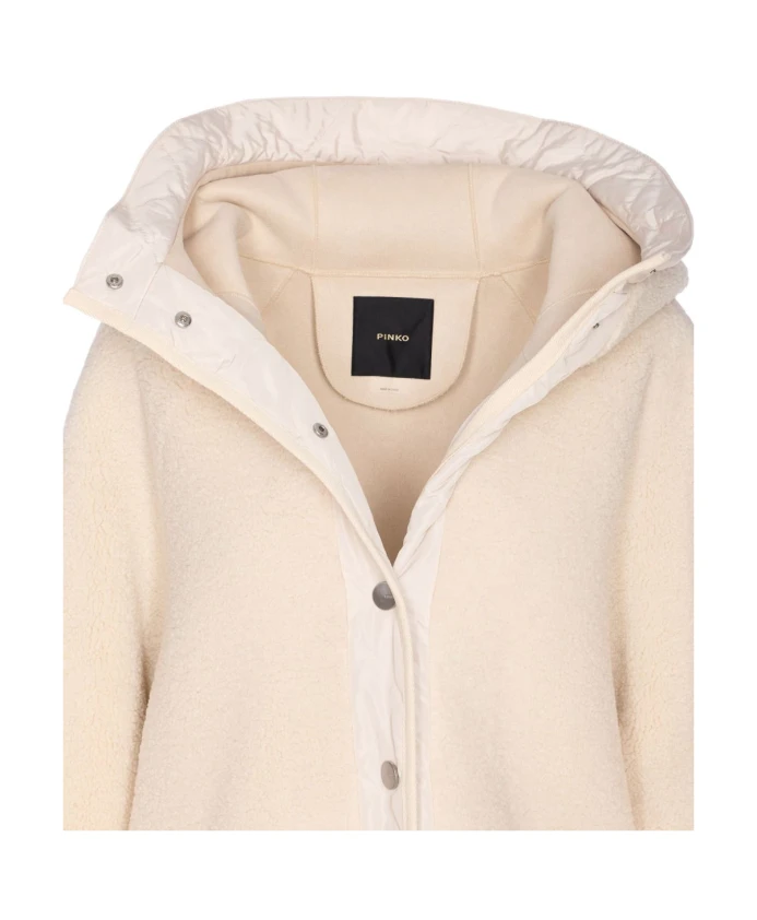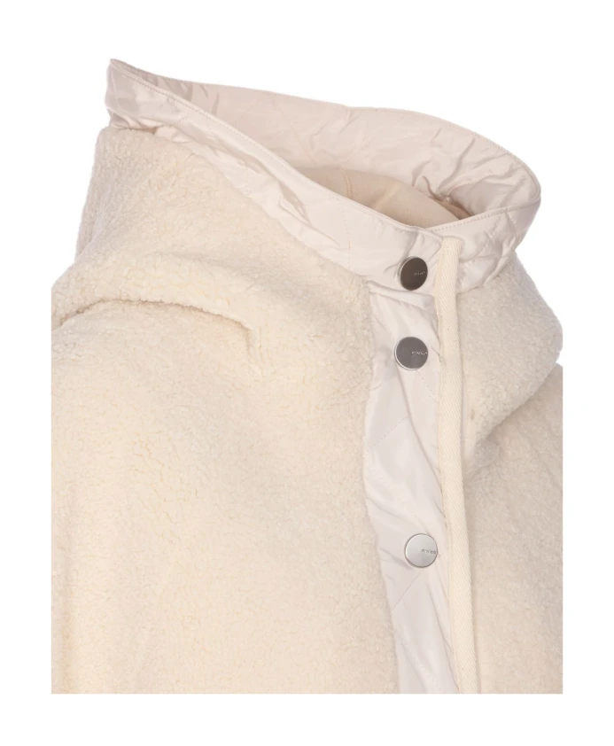 Оставайтесь в тепле и выглядите стильно в этой белоснежной куртке с эффектом овчины от PINKO. Застежка на кнопках, капюшон, стеганая вставка и потайные карманы делают эту куртку идеальным выбором для модной женщины.
