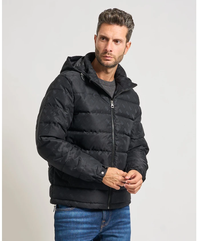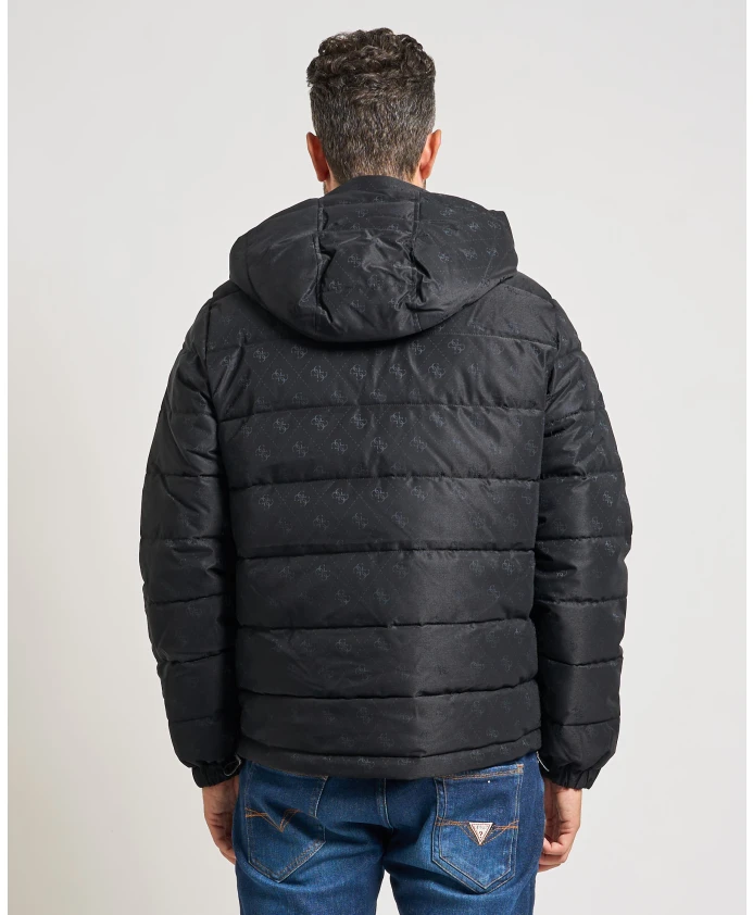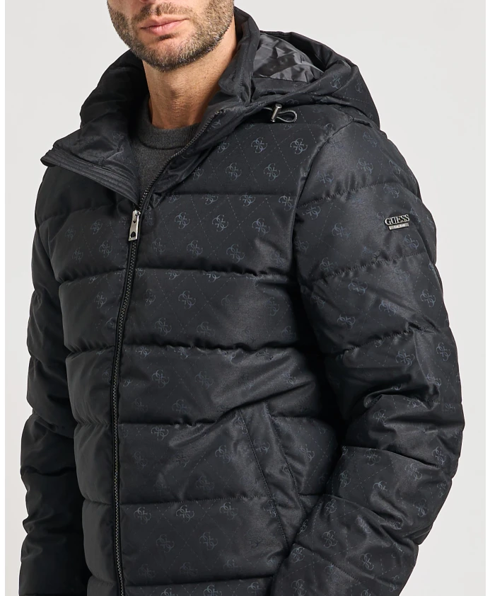 Черная пуховая куртка с капюшоном и монограммой. Guess, черный