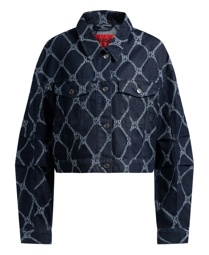 Подчеркните свой стиль с помощью этой укороченной джинсовой куртки-тракера HUGO для женщин. Изготовлена из прочного синего денима, имеет плиссированные рукава и напечатанный логотип Stack.