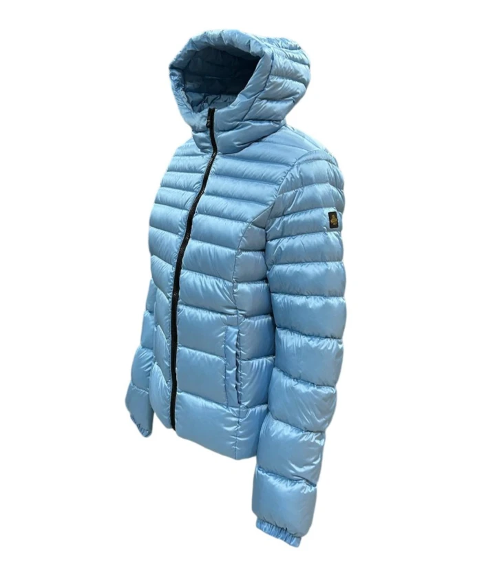 Оставайтесь в тепле и выглядите стильно этой зимой с синей курткой-бомбером от RefrigiWear, разработанной специально для женщин.