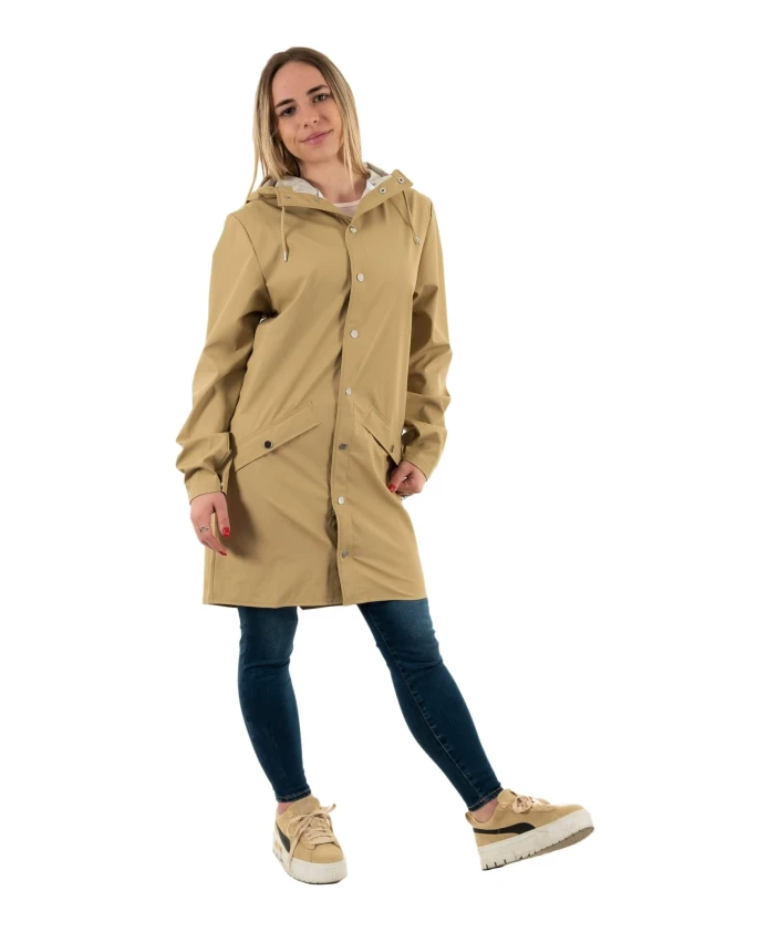 Оставайтесь сухими и стильными в этой длинной водонепроницаемой куртке от Rains, разработанной специально для женщин.