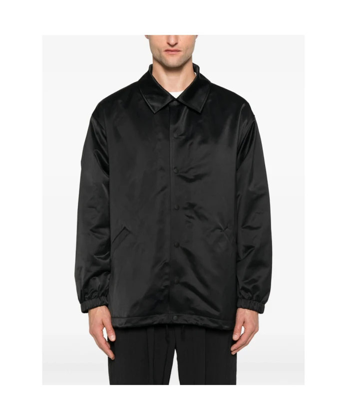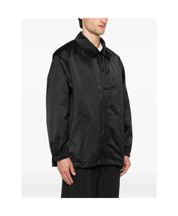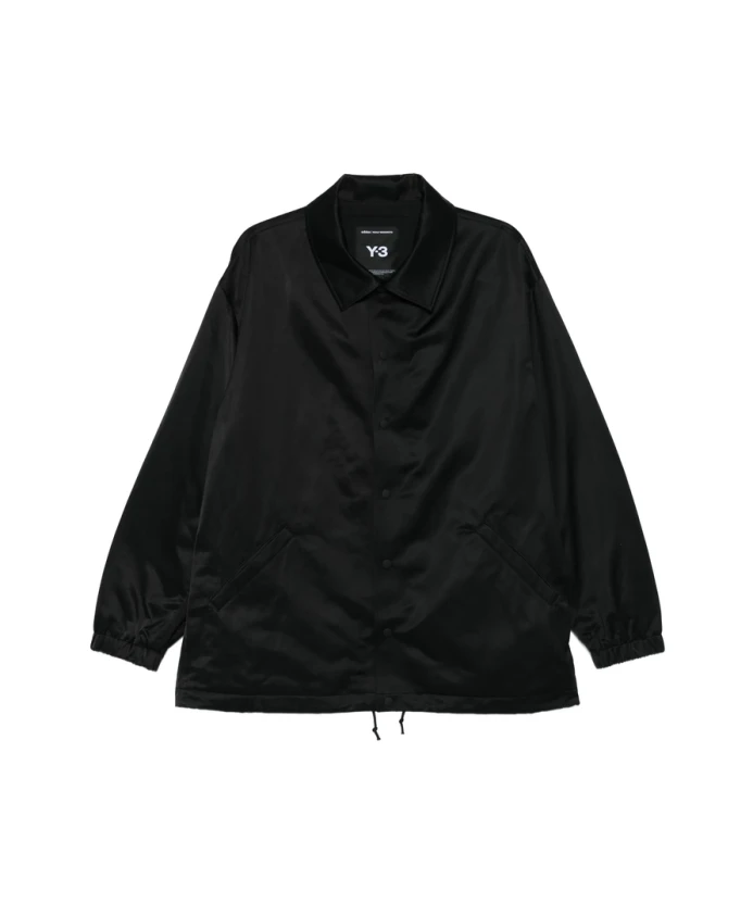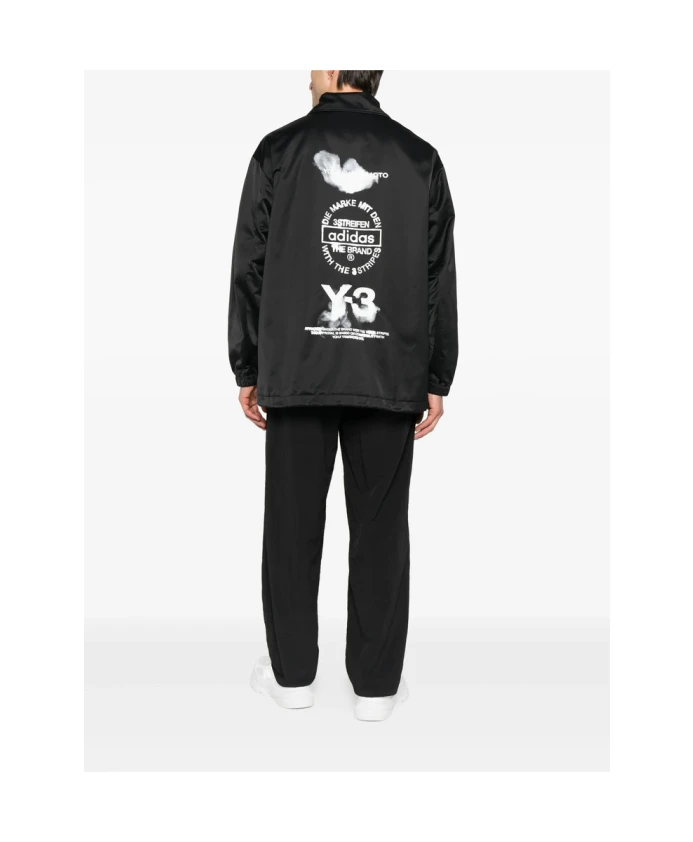 Черная легкая мужская куртка Y-3 с застежкой на кнопки, накладными карманами, логотипом и эластичными манжетами.