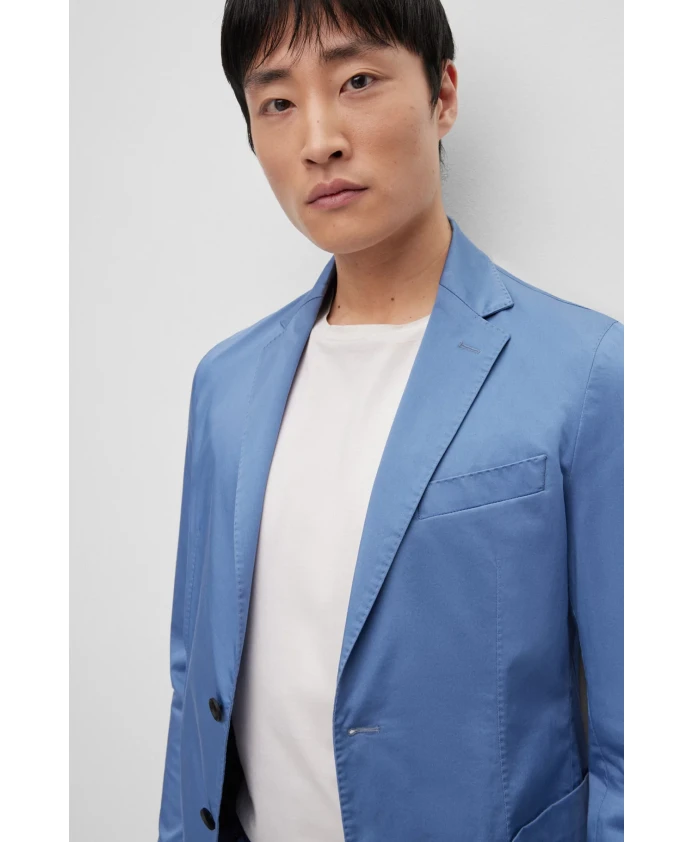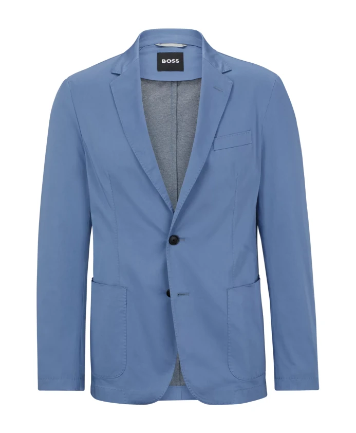 Мужской пиджак Hugo приталенного кроя, изготовленный из эластичной хлопковой смеси с немнущейся тканью.