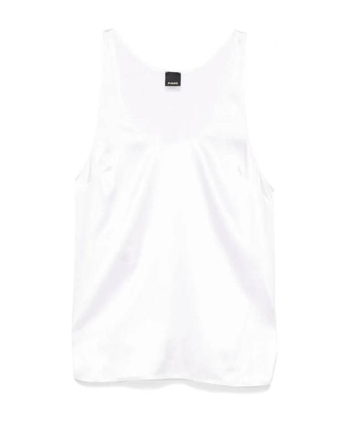Топ PINKO Crazy Tank Top выполнен из шелкового атласа и имеет блестящий, струящийся силуэт. Отсутствие рукавов и широкий круглый вырез делают его идеальным для элегантных случаев или для ношения под пальто. Основные характеристики: Белый | Шелк | Эластичная ткань | Легко надевается под жакеты или пальто | Широкий круглый вырез (спереди и сзади) | Силуэт без рукавов | Атласная отделка с блестящей, струящейся текстурой | Состав и уход: Шелк 91% | Эластан 9% | Не стирать. Не отбеливать. Не сушить в сушильной машине. Гладить при максимальной температуре 110°C. Химчистка с использованием тетрахлорэтилена.