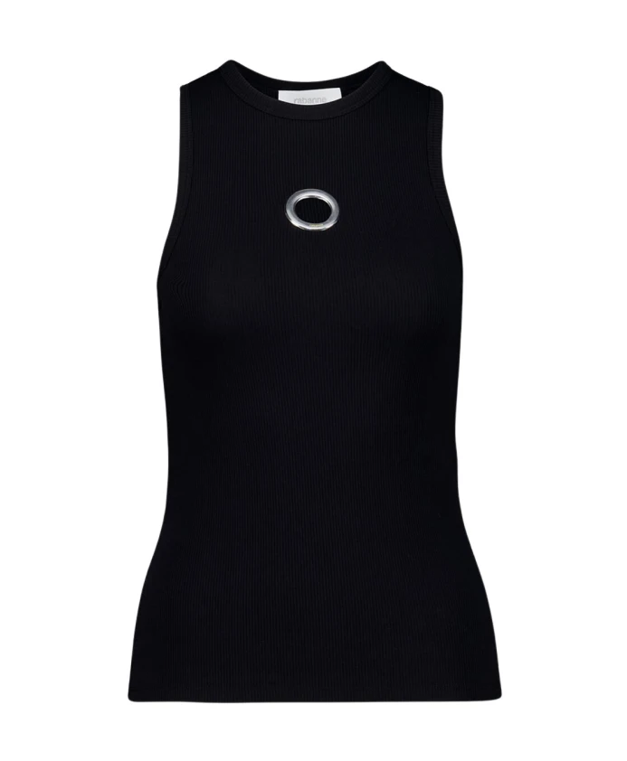 Хлопковая майка Rabanne - это минималистичный топ без рукавов, отличающийся эффектной серебристой металлической люверсой на груди, создающий элегантный современный образ для изысканного повседневного стиля. Ключевые особенности: Черный | Хлопковый трикотаж | Эластичная ткань | Круглый вырез | Без рукавов | Серебристая металлическая люверса на груди | Ребристые манжеты | Фирменный логотип на задней части воротника | Размер и посадка: Соответствует размеру | Приталенный крой | Состав и уход: 97% хлопок, 3% эластан | Машинная стирка в щадящем режиме