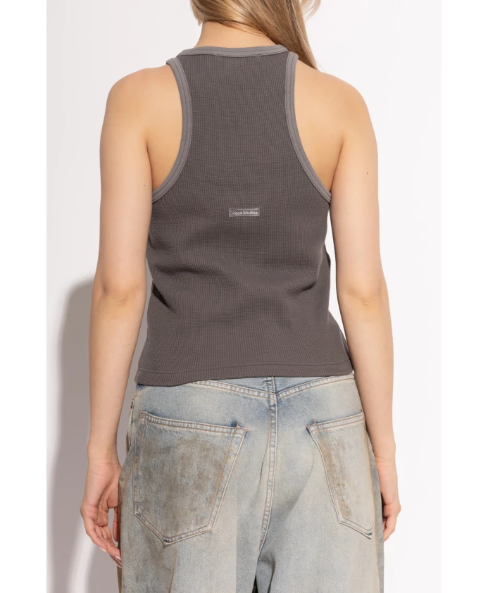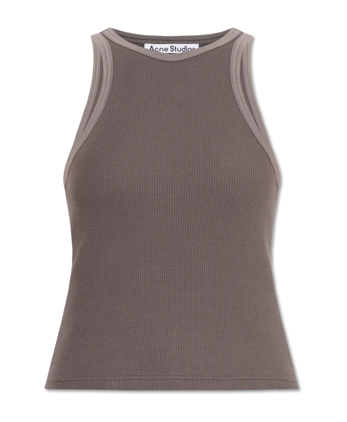 Майка Acne Studios - облегающая майка из вафельной ткани серого цвета, сочетающая ребристую текстуру и приталенный силуэт для повседневной носки. Ключевые особенности: Серый цвет | Хлопок | Эластичность | Комфорт | Свобода движений | Эластичность для придания формы | Круглый вырез | Без рукавов | Ребристая/вафельная текстура | Логотип на спине | Укороченная длина | Размеры и посадка: Приталенный крой | Состав ткани и уход: 100% хлопок | Машинная стирка в холодной воде, сушить в горизонтальном положении.