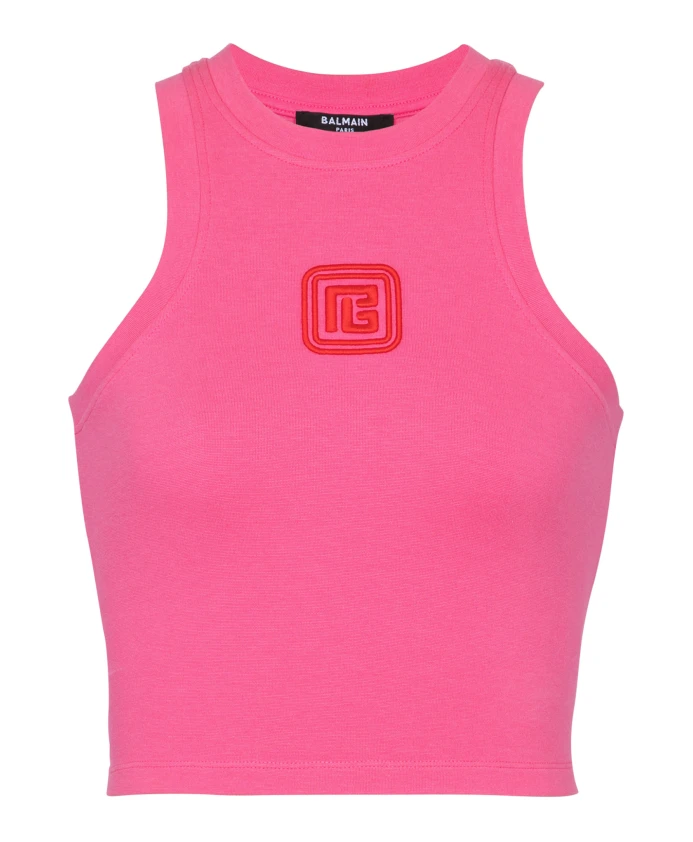Укороченная майка с ретро-вышивкой PB. Balmain, розовый