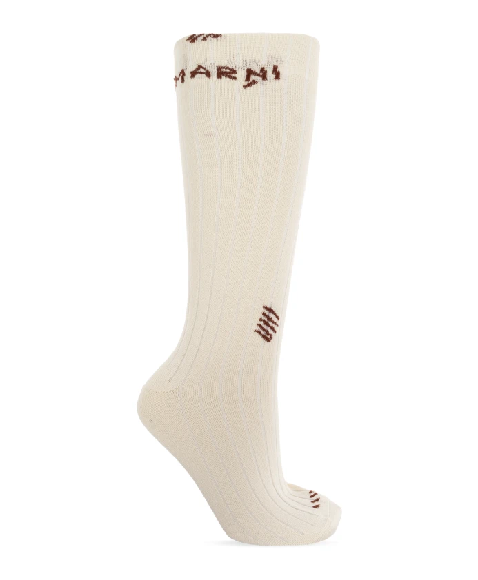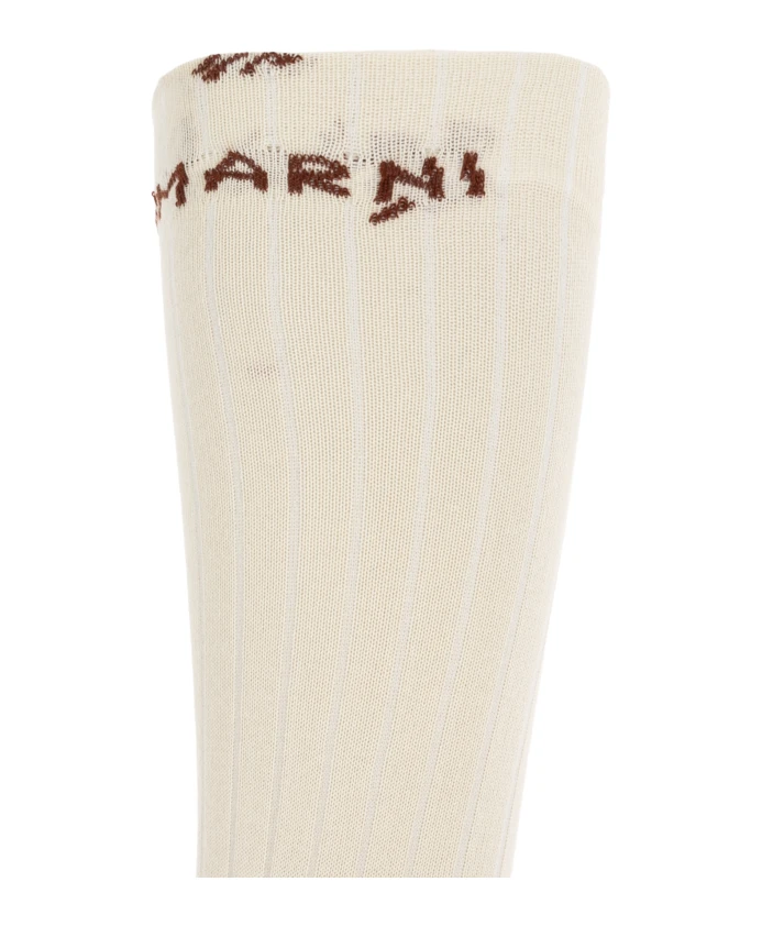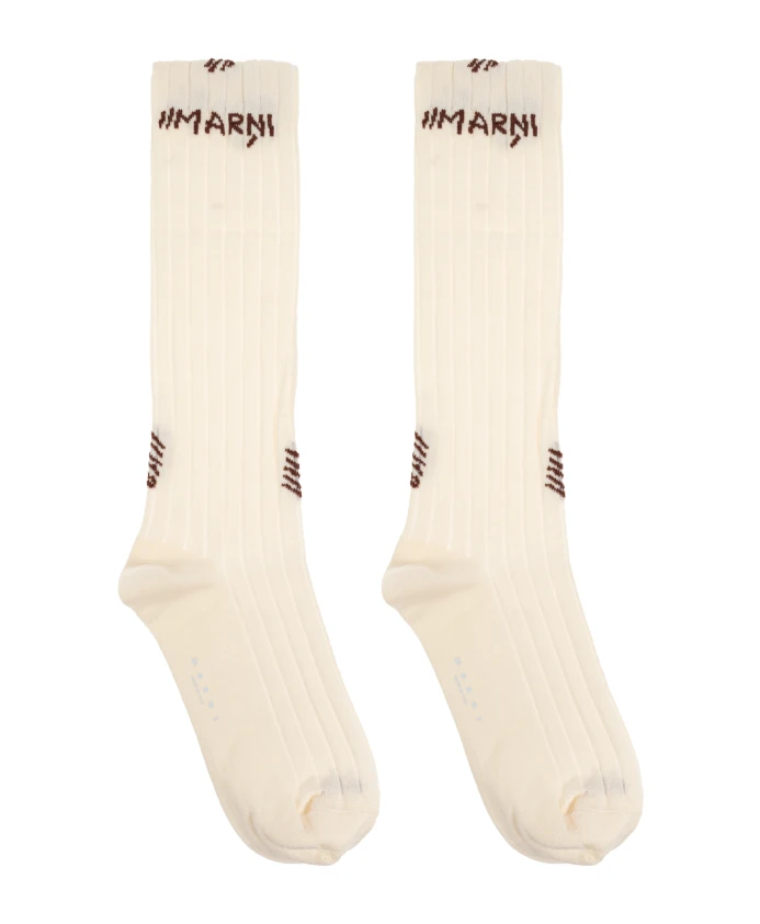 Носки с логотипом MARNI - это воплощение изысканной простоты и художественного стиля, характерного для этого итальянского бренда. Представленные в кремовом оттенке, они очаровывают тонким ребристым узором и классической длиной до икры. Анатомическая форма с четко выраженной пяткой обеспечивает идеальную посадку, а тщательно подобранная смесь высококачественного хлопка и современных волокон повышает комфорт и долговечность. Искусно расположенный логотип MARNI, выполненный в стиле ручной графики и дополненный абстрактными деталями темно-коричневого цвета, подчеркивает уникальный характер этого изделия. Эти носки очаровывают не только своей утонченной эстетикой, но и тщательным вниманием к мельчайшим деталям - от материалов до безупречного мастерства. ПОЧЕМУ ВЫБРАТЬ ЭТОТ ПРОДУКТ? * Отличительный стиль Marni, вдохновленный культурным многообразием * Непревзойденный комфорт и долговечность благодаря высококачественным материалам * Эксклюзивный художественный характер, узнаваемый по деталям логотипа и графическим мотивам * Элегантный, универсальный крой, подходящий ко многим нарядам