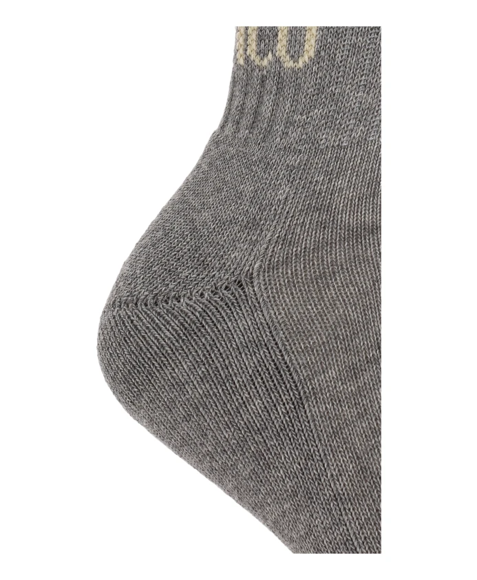 Хлопковые носки Attico с логотипом сочетают в себе дизайнерские детали и повседневный комфорт. Они отличаются эффектным логотипом и усиленными пяткой и носком для повышения износостойкости. Ключевые особенности: Серый | Хлопок | Усиленные пятка и носок | Мягкая и эластичная вязка | Прочная ребристая вязка | Удобная длина до щиколотки | Эластичность для плотной посадки | Жаккардовый логотип | Геометрический диагональный узор логотипа | Гладкая, тонкая вязка | Размер и посадка: Длина до щиколотки | Обычная посадка - выбирайте свой обычный размер | Состав и уход: 85% хлопок | 10% полиамид | 5% эластан | Машинная стирка в холодной воде, сушка в барабане при низкой температуре.