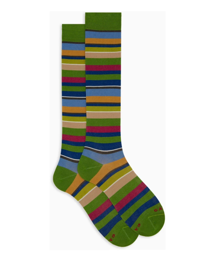 Длинные носки GALLO из легкой эластичной хлопковой смеси с культовой многоцветной полосой на зеленом фоне и контрастным вышитым логотипом, предназначенные для повседневной носки со спортивной или повседневной обувью. Ключевые особенности: Многоцветные | Кактус | Панна | Хлопок | Легкие | Эластичные | Подходят для повседневной носки | Удобны со спортивной и повседневной обувью | Длинные | Многоцветный полосатый узор на зеленом фоне | Вышитый контрастный логотип на мыске | Размер и посадка: Соответствуют размеру | Состав и уход: Хлопок | Эластан