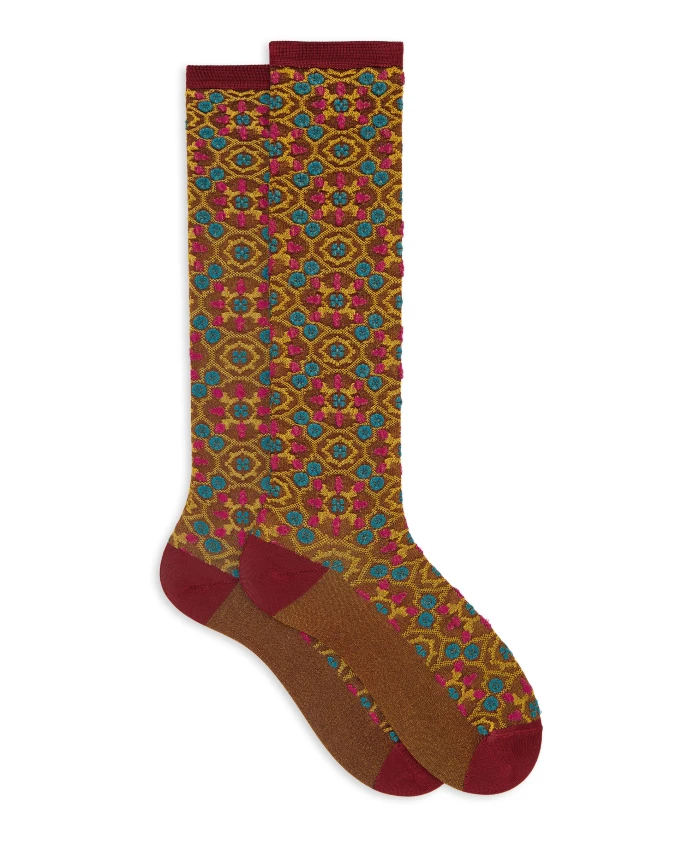 Длинные вискозные носки Gallo сочетают в себе мягкую вискозную ткань и узор, напоминающий плитку, и идеально подходят для придания изысканности повседневным нарядам. Ключевые особенности: Разноцветные | Бордовые | Вискоза | Мягкие на ощупь | Длинные | Узор, напоминающий плитку | Декоративный многоцветный мотив | Состав и уход: Машинная стирка при температуре не выше 30°C. Не отбеливать. Возможна химчистка. Не гладить. Не сушить в сушильной машине.