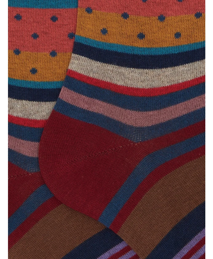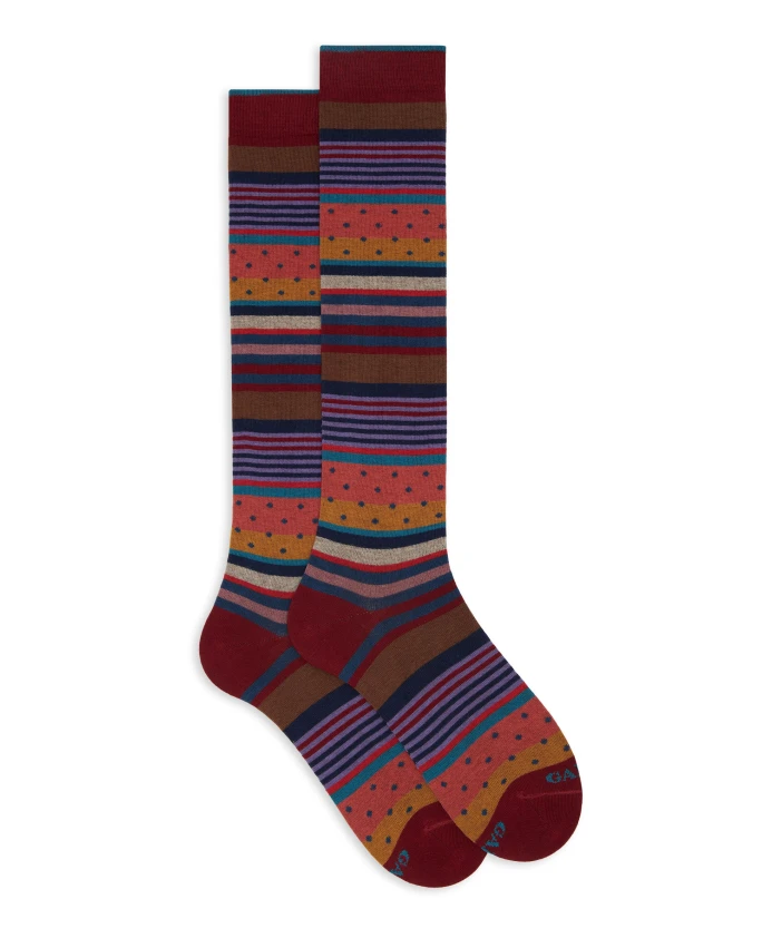 Длинные носки GALLO - это воплощение итальянского мастерства в повседневной обуви с узором. Они отличаются игривым сочетанием полосок и горошка в бордовых тонах, что позволяет создавать разнообразные образы - от повседневных до официальных. Основные характеристики: Разноцветные | Бордовые | Хлопок | Мягкие на ощупь | Эластичные | Длинные | Универсальный стиль | Узор в полоску и горошек | Разноцветные с бордовыми оттенками | Сделано в Италии