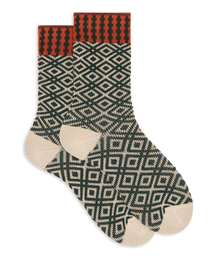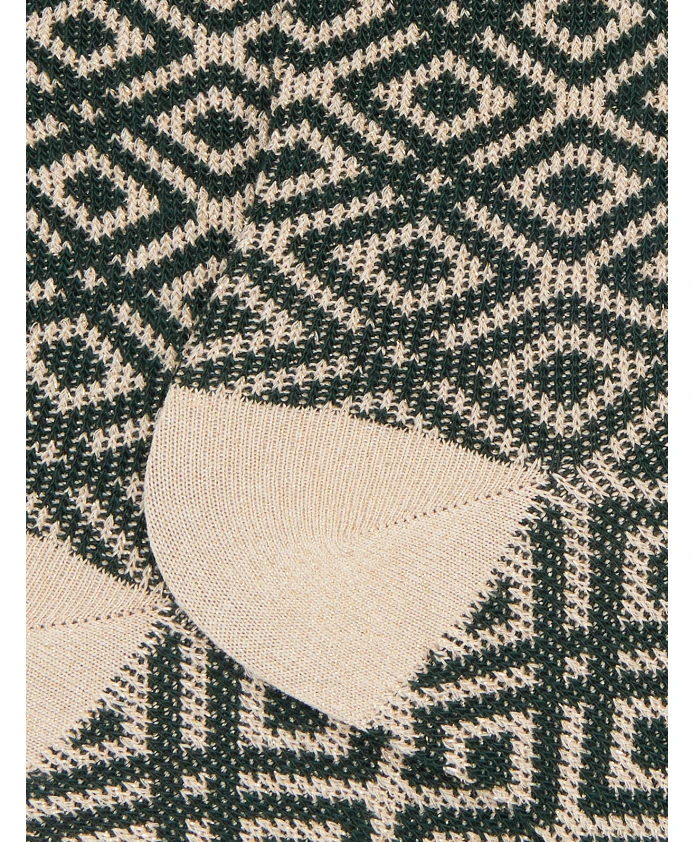 Короткие хлопковые носки от GALLO, сочетающие в себе изысканный геометрический узор и легкий блестящий эффект, - стильный и оригинальный аксессуар. Ключевые особенности: Зеленый | Хлопок | Геометрический узор | Блестящий эффект | Размеры и посадка: Короткая длина | Состав материала и уход: Хлопок