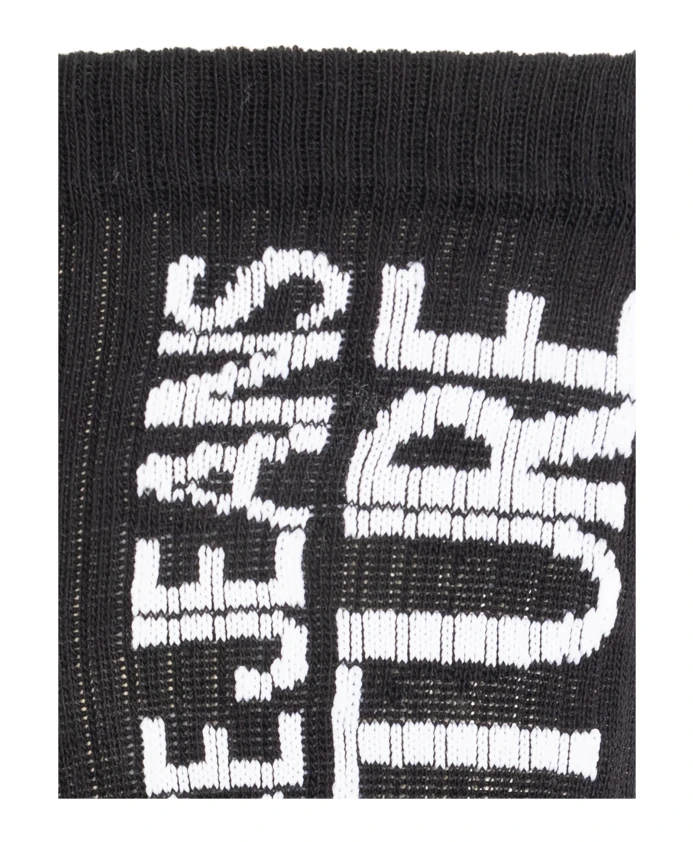 Откройте для себя хлопковые носки с логотипом, излучающие изысканную элегантность и воплощающие в себе суть роскоши. Эти черные носки, созданные известным брендом VERSACE JEANS COUTURE, украшены белой надписью.