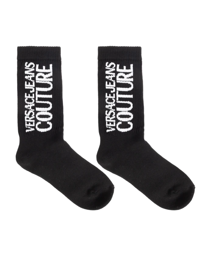 Хлопковые носки с логотипом Versace Jeans Couture, черный