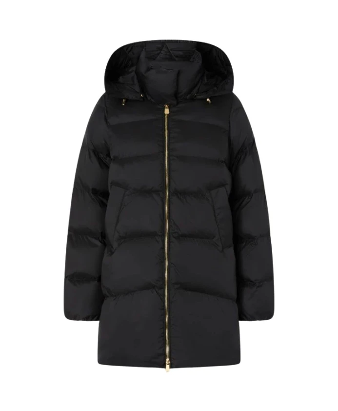 Стеганое, утепленное пальто PINKO из слегка глянцевой технической ткани, предназначенное для повседневной носки в холодную погоду, со съемным капюшоном и высоким воротником для дополнительной защиты. Ключевые особенности: Черный | Нейлон | Техническая ткань | Съемный капюшон | Высокий воротник для дополнительной защиты | Горизонтальная стежка | Высокий воротник | Слегка глянцевая отделка | Состав и уход: 100% нейлон