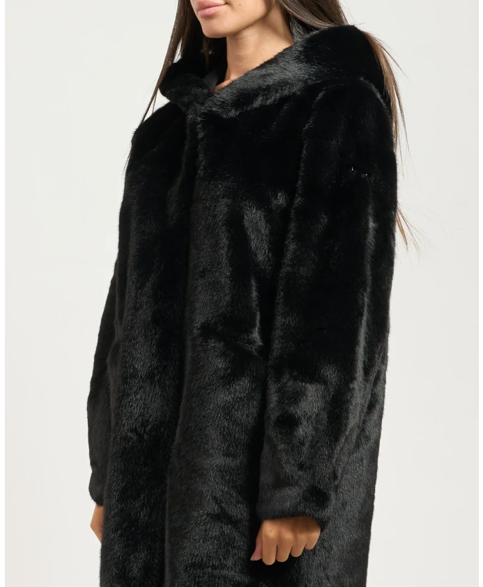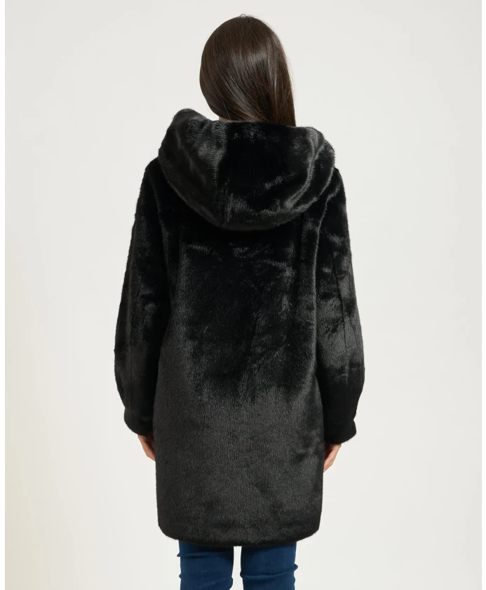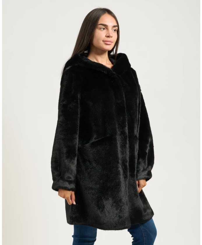 Черное длинное пальто с капюшоном Yes Zee, черный