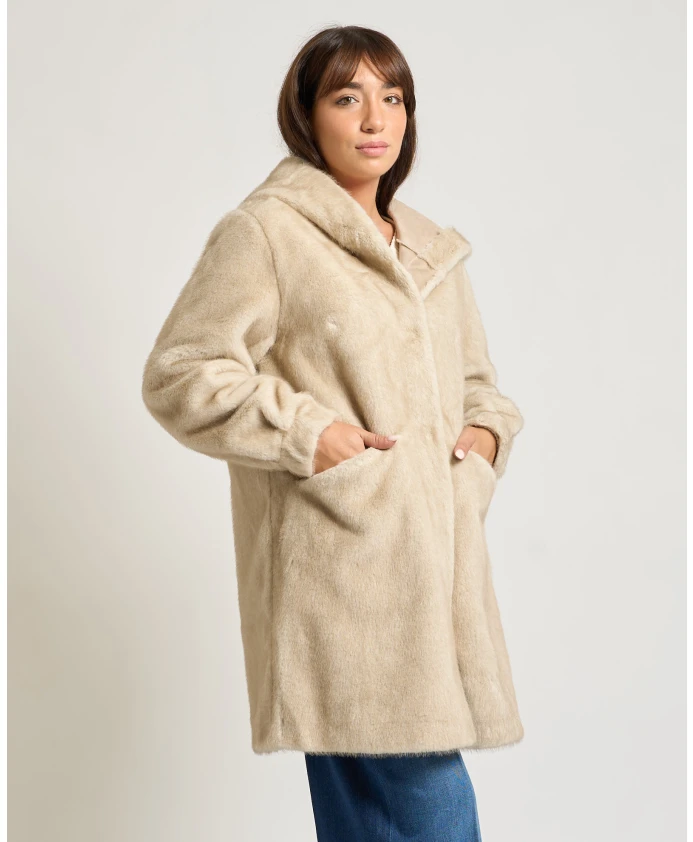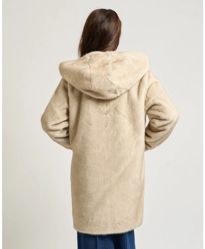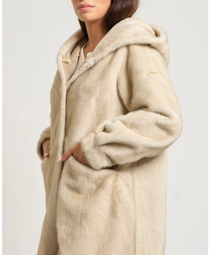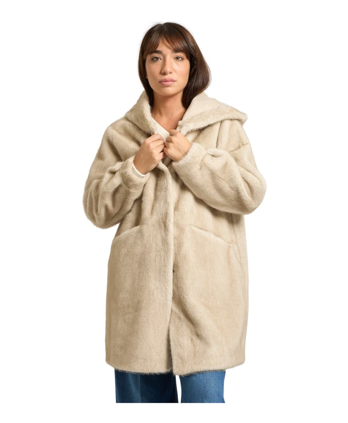 Бежевое длинное пальто с капюшоном Yes Zee, бежевый