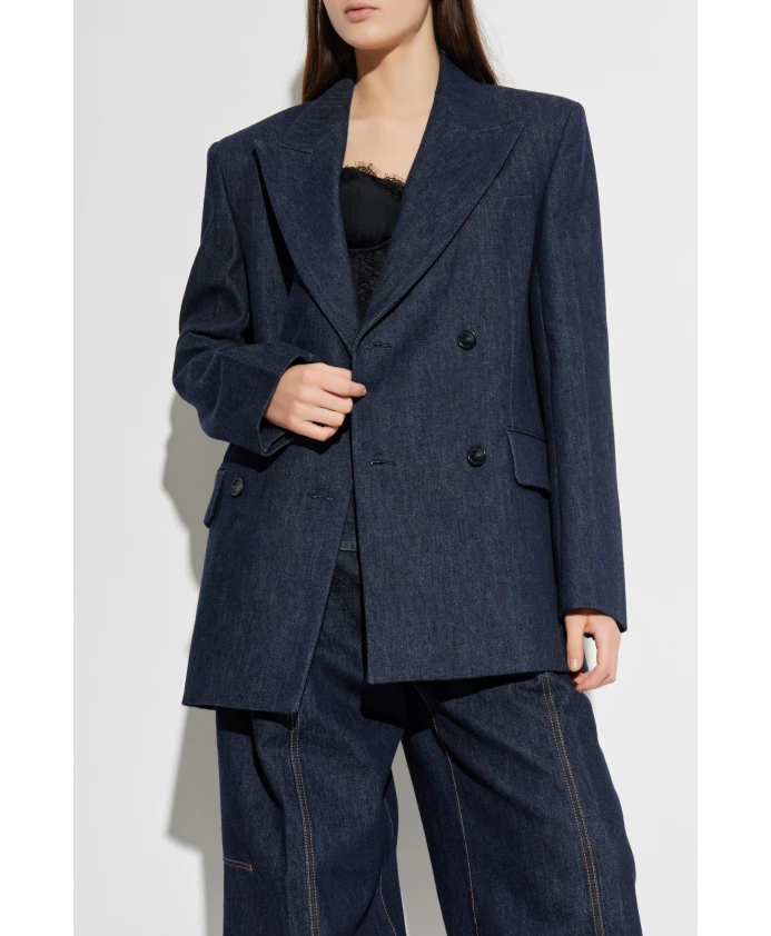 Бренд: Sportmax Цвет: синий Материалы: внешний материал: 100% хлопок | подкладка: 70% ацетат, 30% полиэстер только химчистка (перхлорэтилен, деликатный режим). не стирать, не отбеливать и не сушить в сушильной машине. гладить при низкой температуре. не подвергать влажной чистке. стирать изделие в закрытом виде; защитные пуговицы; стирать отдельно и вывернутым наизнанку; вешать вывернутым наизнанку и вдали от прямых солнечных лучей. индиго может выцветать и окрашивать светлые ткани.