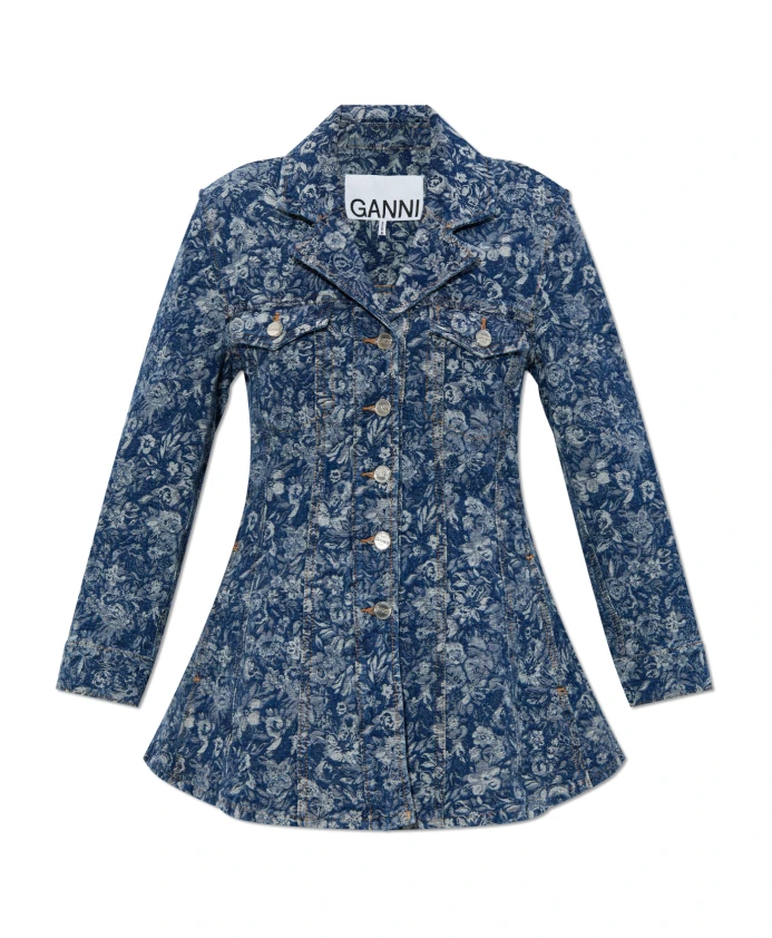 Жаккардовый джинсовый блейзер Ganni, синий