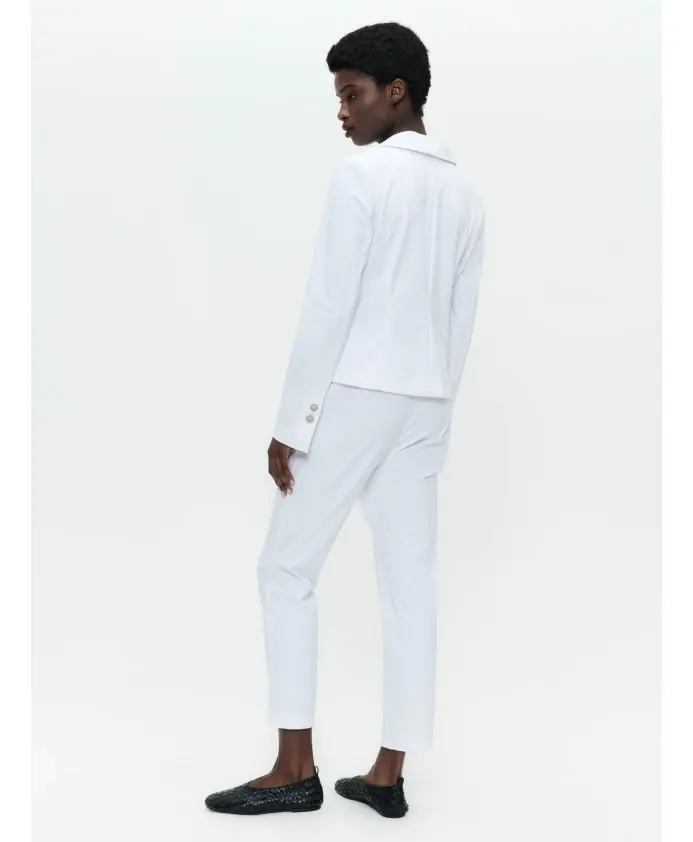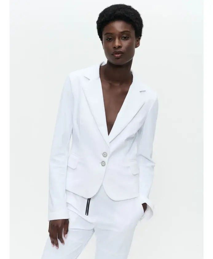 Блейзер Jane Lushka Solomon из технического трикотажа сочетает в себе классический силуэт блейзера с плотной, эластичной тканью, создавая структурированный, но комфортный образ, подходящий как для формальных, так и для повседневных случаев. Ключевые особенности: Белый | Полиамид | Эластичная ткань | Не мнется | Быстросохнущий | Дышащий (влагоотводящий) | Устойчив к образованию катышков | Застежка на пуговицы спереди | Накладные карманы | Классический силуэт блейзера | Отложной лацкан | Длинные рукава | Однобортный дизайн | Размеры и посадка: Соответствует размеру | Приталенный крой | Эластичная ткань для дополнительного комфорта | Длина: до бедер | Рост модели 178 см (5'10"), размер S | Состав и уход: 74% полиамид, 26% эластан | Машинная стирка в холодной воде. Не отбеливать. Не сушить в сушильной машине. Гладить при низкой температуре. Не использовать тетрахлорэтилен.