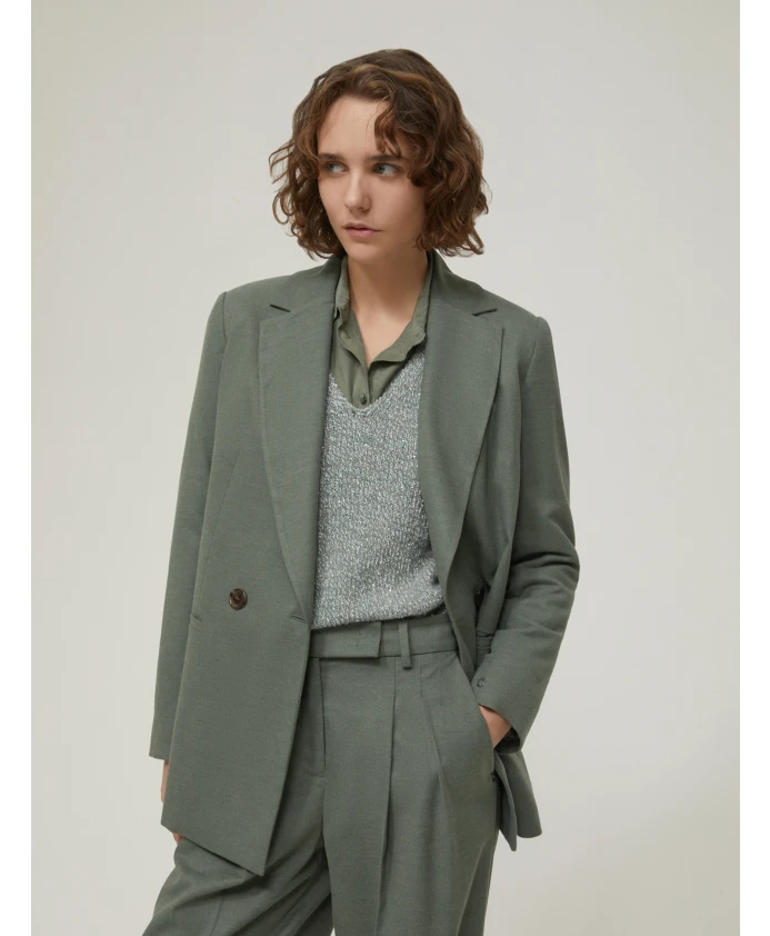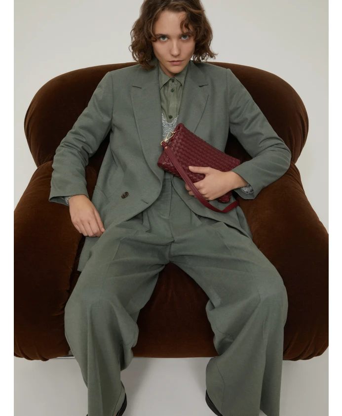 Блейзер Pennyblack Robin - это фланелевый блейзер из смесовой шерсти с мягким, свободным кроем. Он разработан как универсальный элемент гардероба для создания как элегантных повседневных образов, так и строгих костюмов. Ключевые особенности: Зеленый | Зеленый | Смесовая шерсть | Эластичный | Мягкая, ворсистая текстура | Полностью на подкладке | Двубортный, застежка на две пуговицы | Прорезные карманы | Лацканы с лацканами | Двубортный, застежка на две пуговицы | Прорезные передние карманы | Теплая ворсистая отделка | Размеры и посадка: Свободный крой | Состав и уход: 51% полиэстер | 27% вискоза | 20% шерсть | 2% эластан | Не стирать; не отбеливать; не сушить в сушильной машине; гладить при низкой температуре (макс. 120°C); профессиональная химчистка с перхлорэтиленом - щадящий процесс; не стирать влажным способом.