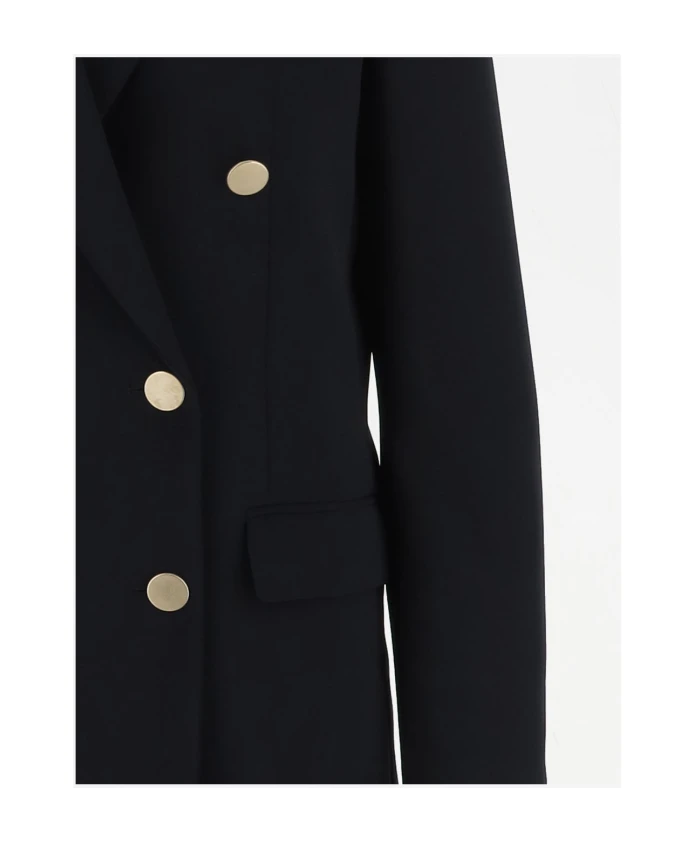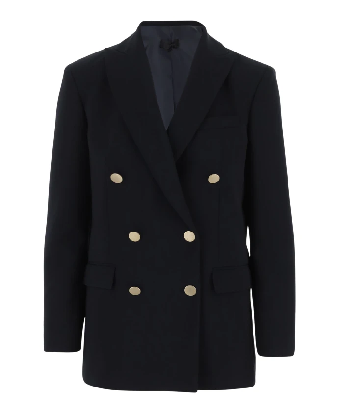 Этот двубортный пиджак темно-синего цвета сочетает в себе приталенный силуэт блейзера и эластичный полиэстер для комфортной свободы движений. Отложной лацкан и двубортная застежка делают его подходящим как для работы, так и для официальных мероприятий. Ключевые особенности: Синий | Полиэстер | Эластичная ткань | Двубортная застежка на пуговицы | Один прорезной карман на груди | Два передних накладных кармана | Манжеты на пуговицах | Отложной лацкан | Длинные рукава | Силуэт блейзера | Детали на пуговицах на манжетах | Размеры и посадка: Рост модели: 175 см | Обхват груди: 86,5 см | Обхват талии: 65 см | Обхват бедер: 92 см | Ширина плеч: 40 см | Размер на фото: 40 IT | Состав и уход: 91% полиэстер | 9% эластан