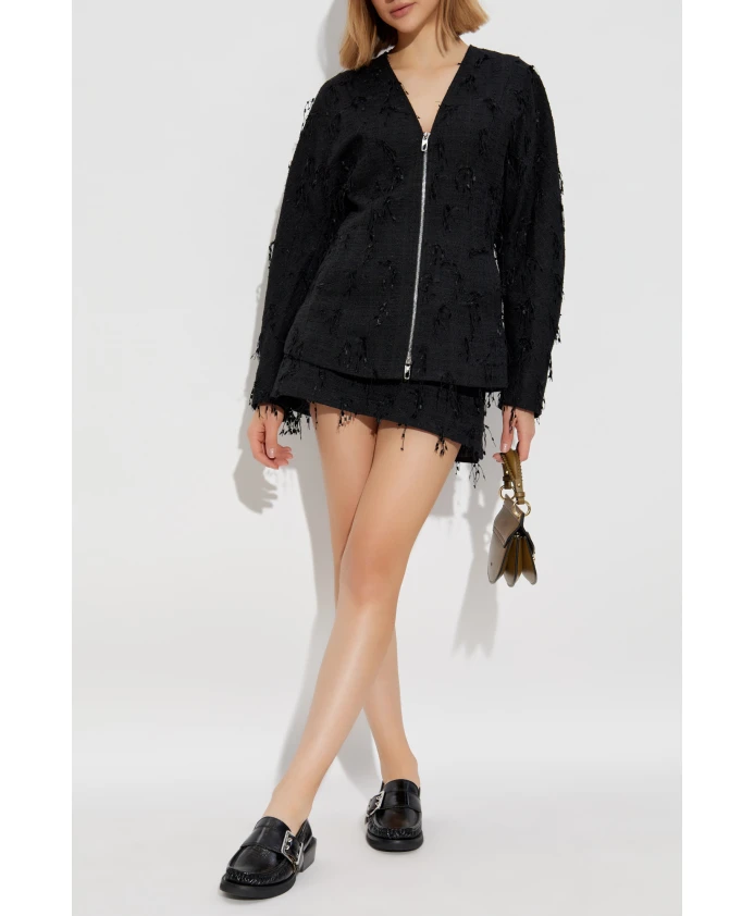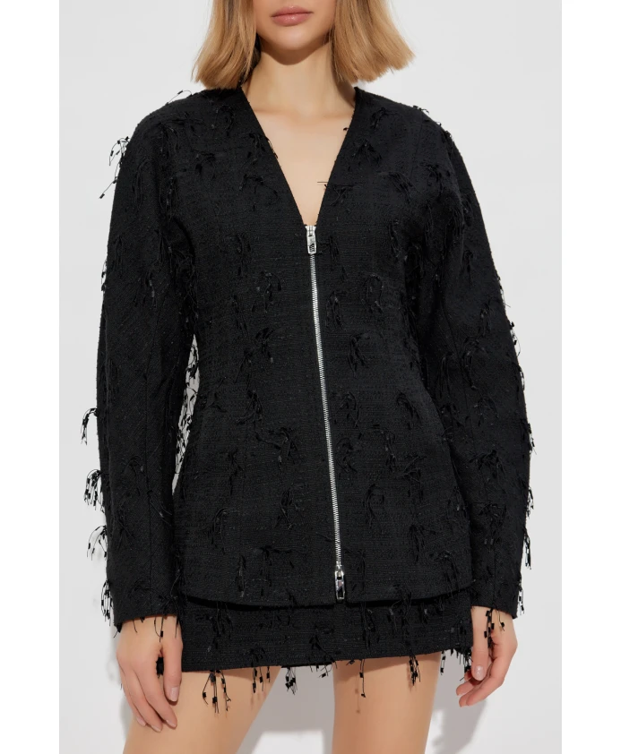 Твидовый блейзер с бахромой Ganni, черный 27 058₽