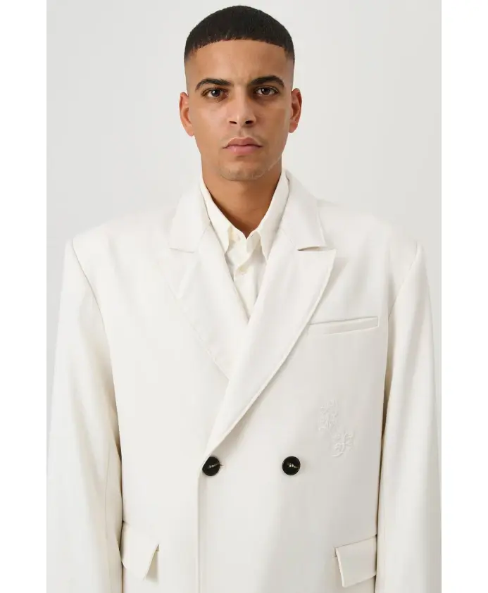 LETO - это двубортный блейзер свободного кроя на подкладке. Два накладных кармана с клапанами спереди. Один накладной нагрудный карман. Две пуговицы из корозо по центру спереди. Плечевые подкладки среднего размера. Ткань - тонкая шерсть саржевого переплетения. Белый цвет. Свободный крой. Лацканы с лацканами. Двубортная застежка. Вышивка в тон спереди и сзади. Полностью на подкладке. Соответствует размеру. Это изделие изготовлено из остатков ткани. 100% шерсть. Ткань поставляется из Италии. Изделие изготовлено в Болгарии. Только химчистка. Остатки - это ткани, которые есть у наших поставщиков на складе, но которые они не смогли продать. Используя такие ткани, мы помогаем минимизировать отходы.