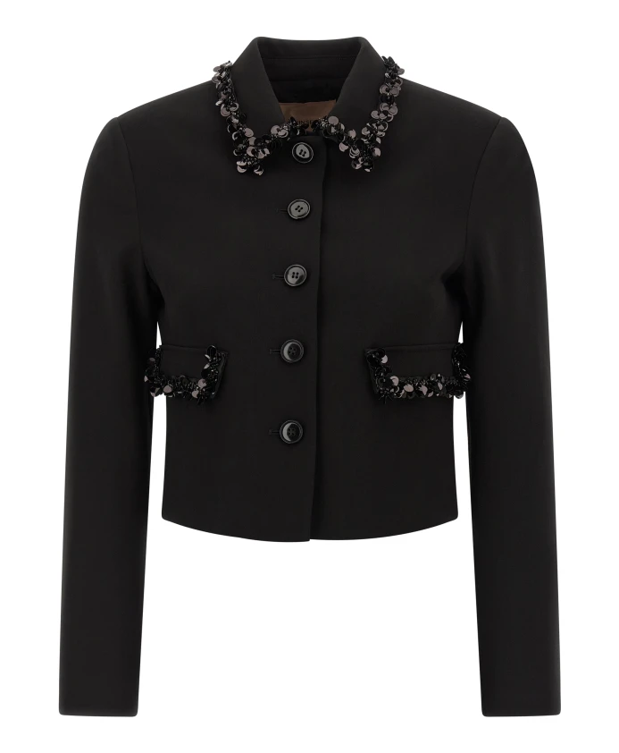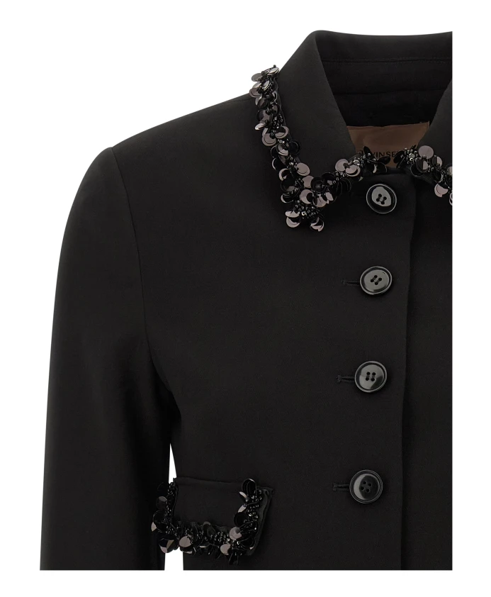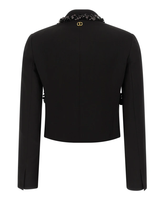 Блейзер-болеро Twinset представляет собой обновленную версию укороченного однобортного силуэта с отделкой из жемчуга и пайеток в тон ткани, идеально подходящую для элегантных, торжественных или вечерних образов. Легкая ткань кади и структурированные плечи создают изысканный, сшитый по фигуре силуэт. Ключевые особенности: Черный | Кади | Застежка на пуговицы спереди | Карманы | На подкладке | Однобортный силуэт болеро | Воротник-стойка | Отделка из жемчуга и пайеток в тон ткани | Структурированные плечи | Длинные рукава с разрезами на манжетах | Размеры и посадка: Соответствует стандартному размеру | Состав ткани и уход: 74% полиэстер | 20% вискоза | 6% эластан