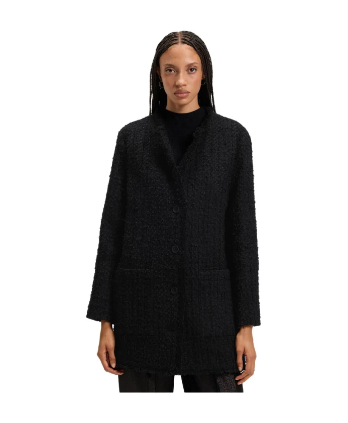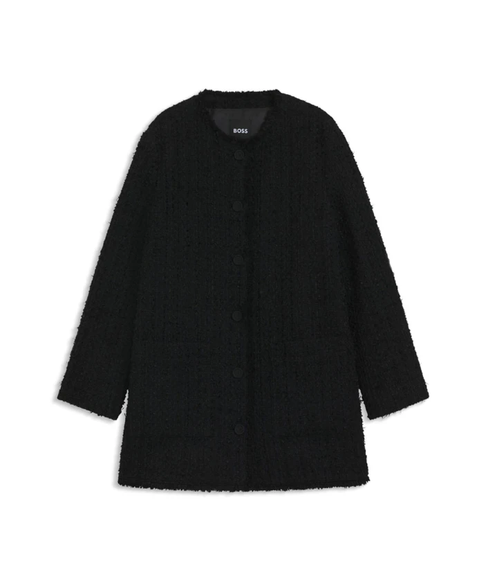 Блейзер Hugo 50548309 - это твидовый жакет без воротника от Hugo, сочетающий однобортную застежку на пуговицы и накладные карманы для создания стильных повседневных образов. Созданный для свободного силуэта, он отлично подойдет как эффектный верхний слой или как элегантный плед. Ключевые особенности: Черный | Хлопок | Застежка на пуговицы | Накладные карманы | Твидовая ткань | Без воротника | Однобортный | Силуэт блейзера | Размеры и посадка: Свободный крой | Состав и уход: 50% хлопок | 16% полиамид | 15% полиэстер | 13% полиакрил | 5% шерсть | 1% другие волокна | Только химчистка.