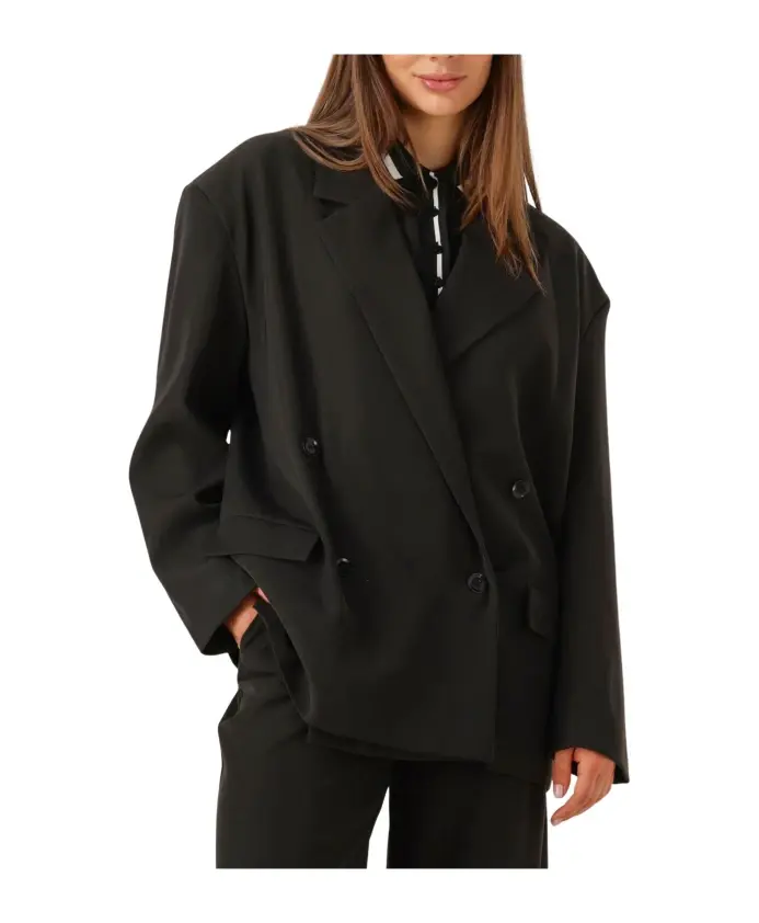 Встречайте прохладный осенний ветер и зимнюю стужу стильно с женским двубортным тканым блейзером от ALIX THE LABEL. Этот черный полиэстеровый блейзер идеально подойдет для шоппинга в городе или непринужденного обеда с друзьями. Сочетайте его с теплым свитером с высоким воротником и стильными джинсами для создания непринужденно элегантного образа. Двубортная застежка на пуговицах добавляет классический штрих, а крой прекрасно подчеркивает вашу фигуру. Будь вы в офисе или на прогулке в парке, этот блейзер станет вашей незаменимой вещью в холодные месяцы.