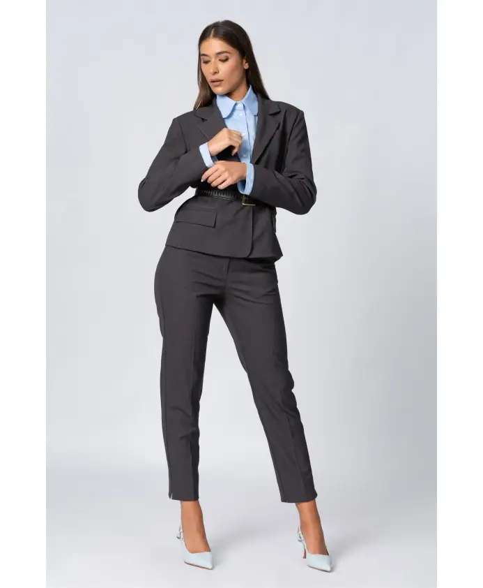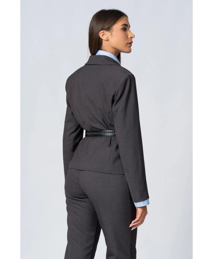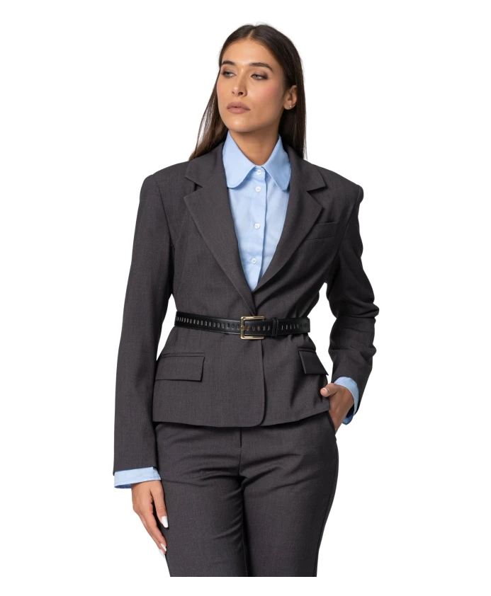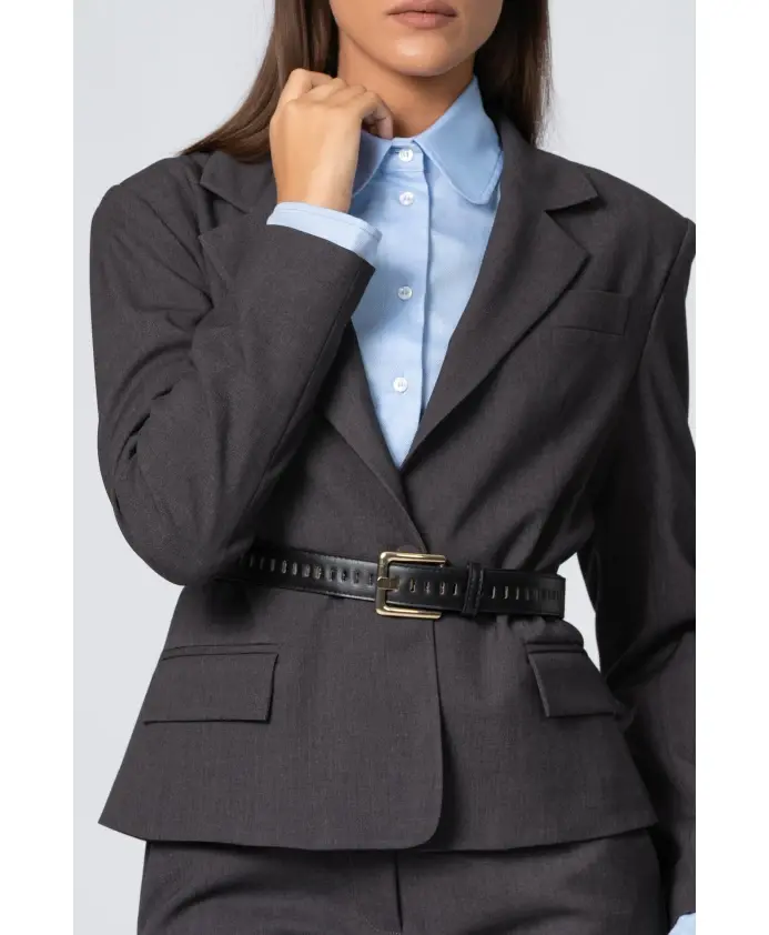 Блейзер Kocca Professional имеет приталенный силуэт длиной до бедра, подчеркнутый контрастным поясом с хромированной пряжкой. Созданный для элегантных деловых и повседневных образов, он отличается чистыми линиями и изысканными деталями. Ключевые особенности: Серый | Grigio scuro | Встроенные карманы | Застежка на одну пуговицу | Контрастный пояс с хромированной пряжкой | Мягкие, контурные лацканы | Силуэт блейзера длиной до бедра | Приталенный крой | Размеры и посадка: Длина до бедра | Рост модели 175 см, размер S/42