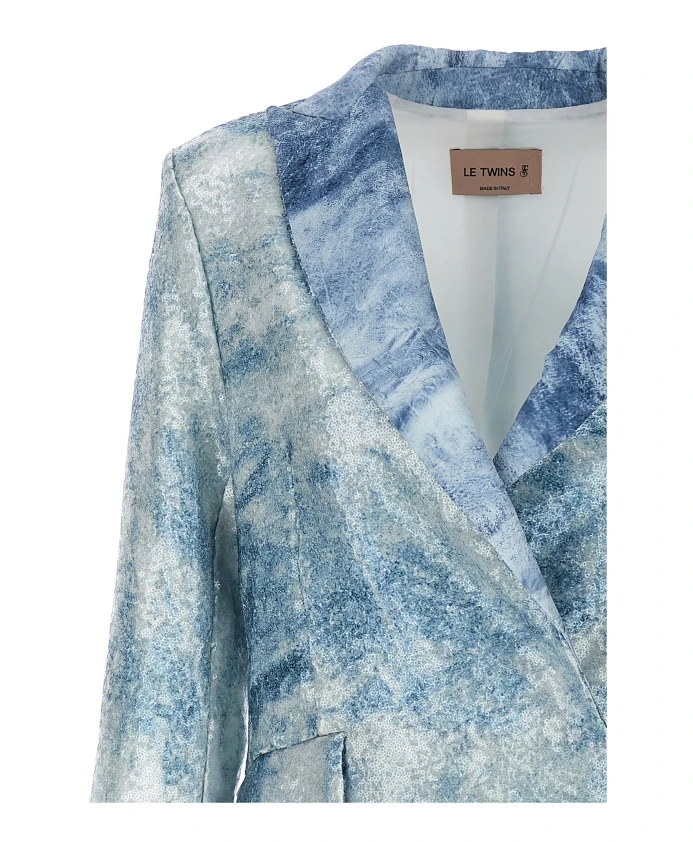 Блейзер Le Twins Como - это классический однобортный силуэт, украшенный пайетками и принтом, идеально подходящий для вечерних мероприятий и создания эффектного образа. Блейзер сочетает в себе прозрачные пайетки и практичные боковые карманы, создавая изысканный и привлекательный образ. Ключевые особенности: Светло-голубой | Полиэстер | Боковые карманы | Застежка на пуговицы | Однобортный | Прозрачные пайетки по всей поверхности | Принт | Размеры и посадка: Стандартный крой | Состав и уход: 95% полиэстер | 5% эластан