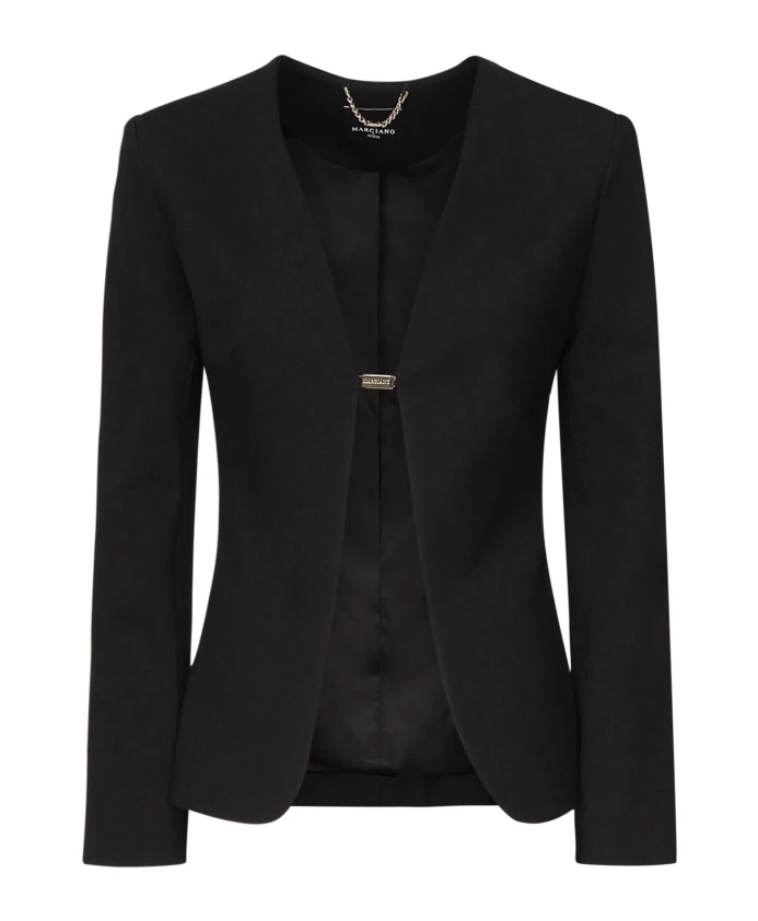 Блейзер Guess Gwen с открытой передней частью - это блейзер из эластичного трикотажа на подкладке с застежкой на кнопки, созданный для элегантных офисных или повседневных образов. Ключевые особенности: Черный | Вискоза | Эластичная ткань | Застежка на кнопки | Полностью на подкладке | V-образный вырез | Открытая передняя часть | Длинные рукава | Размеры и посадка: Стандартный крой | Размер на фото: 38 IT | Состав ткани и уход: Верх: 66% вискоза, 30% нейлон, 4% эластан | Подкладка: 100% полиэстер
