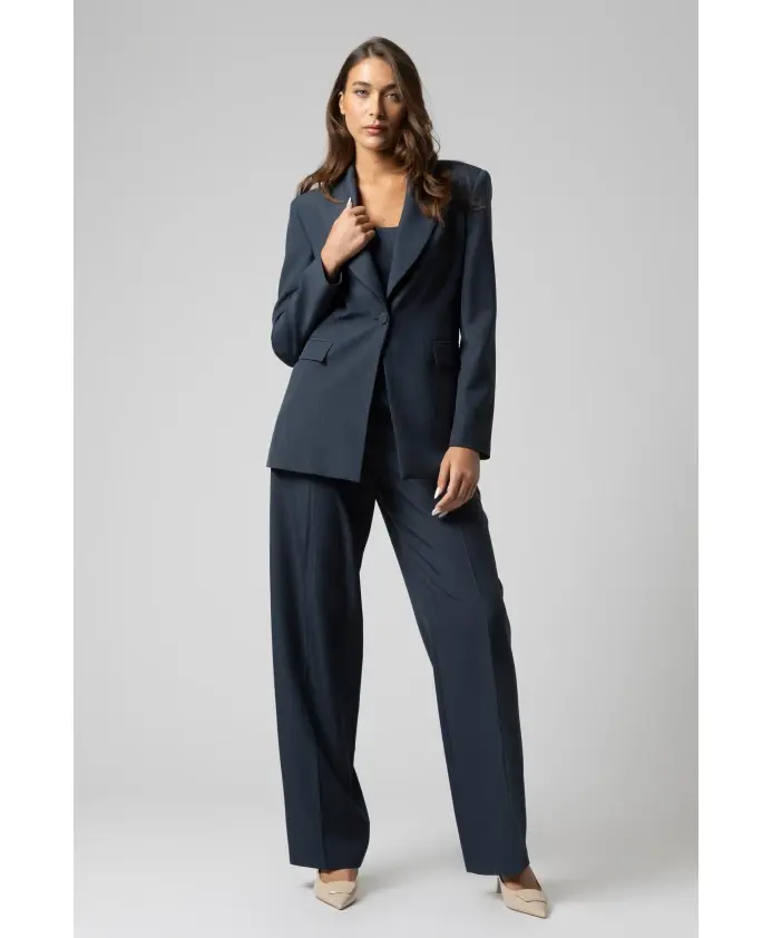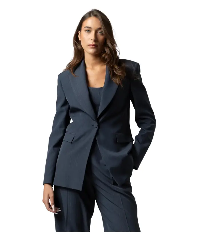 Блейзер Kocca Professional Chic сочетает в себе приталенный силуэт с мягкими длинными рукавами и тонкими полосками, создавая элегантный образ, подходящий для офиса. Застежка на одну пуговицу и широкий лацкан делают его подходящим как для делового стиля, так и для повседневной одежды. Ключевые особенности: Синий | Застежка на одну пуговицу | Широкий лацкан | Тонкие полоски | Приталенный низ | Длинные рукава | Мягкая ткань | Размеры и посадка: Рост модели 175 см, размер S/42