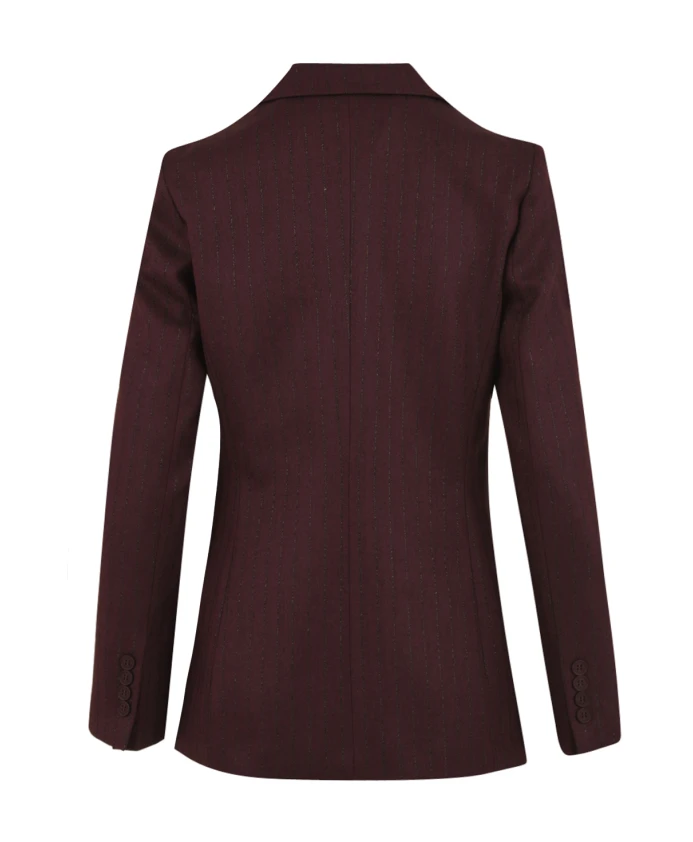 Mar de Margaritas представляет блейзер Lola в тонкую полоску - приталенный жакет в насыщенном бордовом оттенке, который придаст изысканный силуэт как формальным, так и вечерним образам. Ключевые особенности: Красный | Бордовый | Полиэстер | Эластичный | Застежка на пуговицы | Прорезные карманы | Тонкая полоска | Лацканы с лацканами | Однобортный | Состав и уход: 62% полиэстер | 34% вискоза | 3% эластан | 1% металлизированная нить | Следуйте рекомендациям производителя.