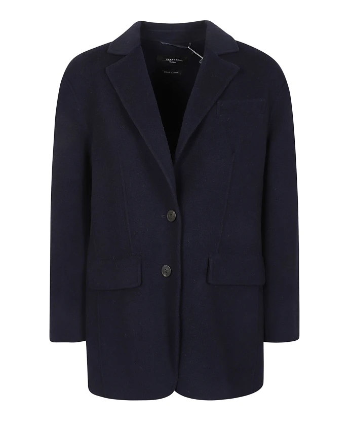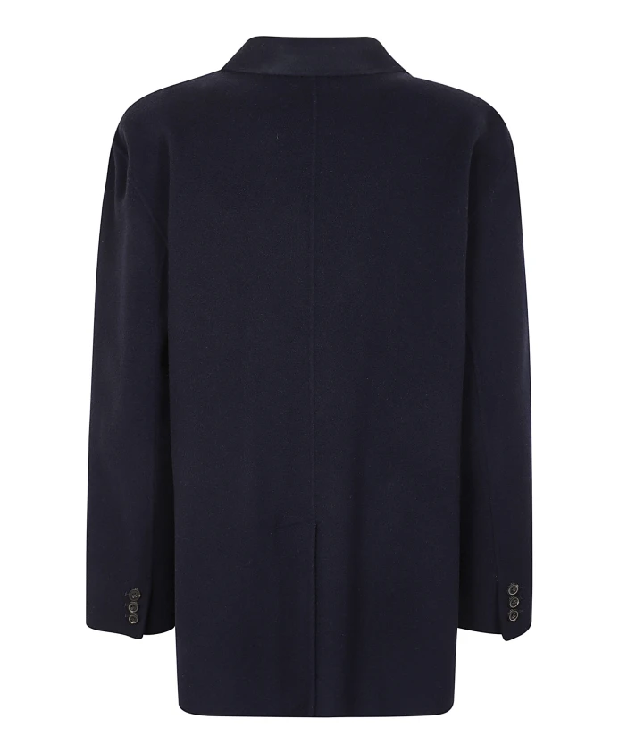 Двубортный пиджак из темно-синей шерсти Weekend Max Mara, синий