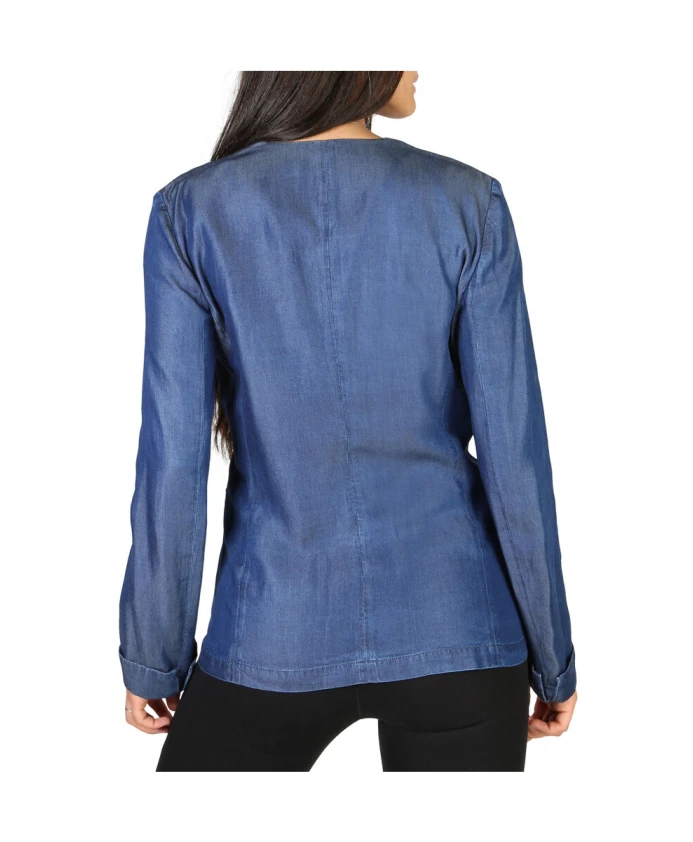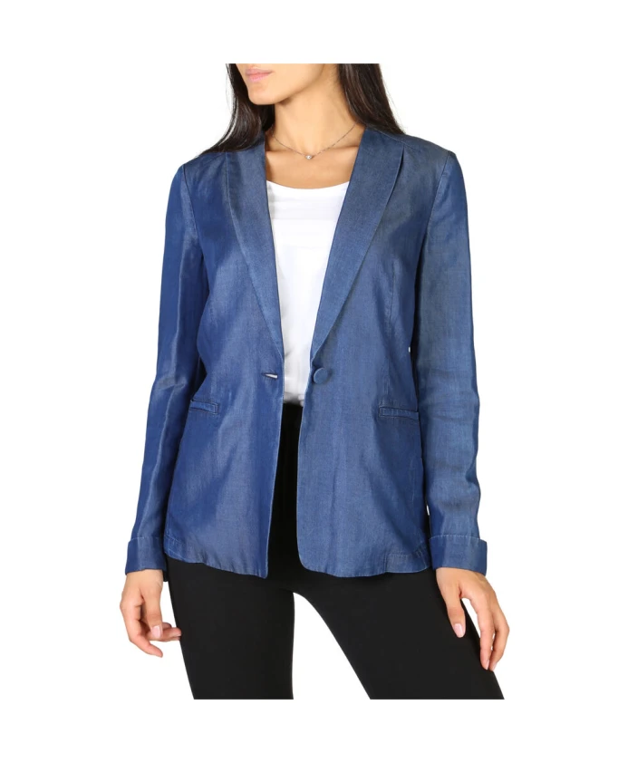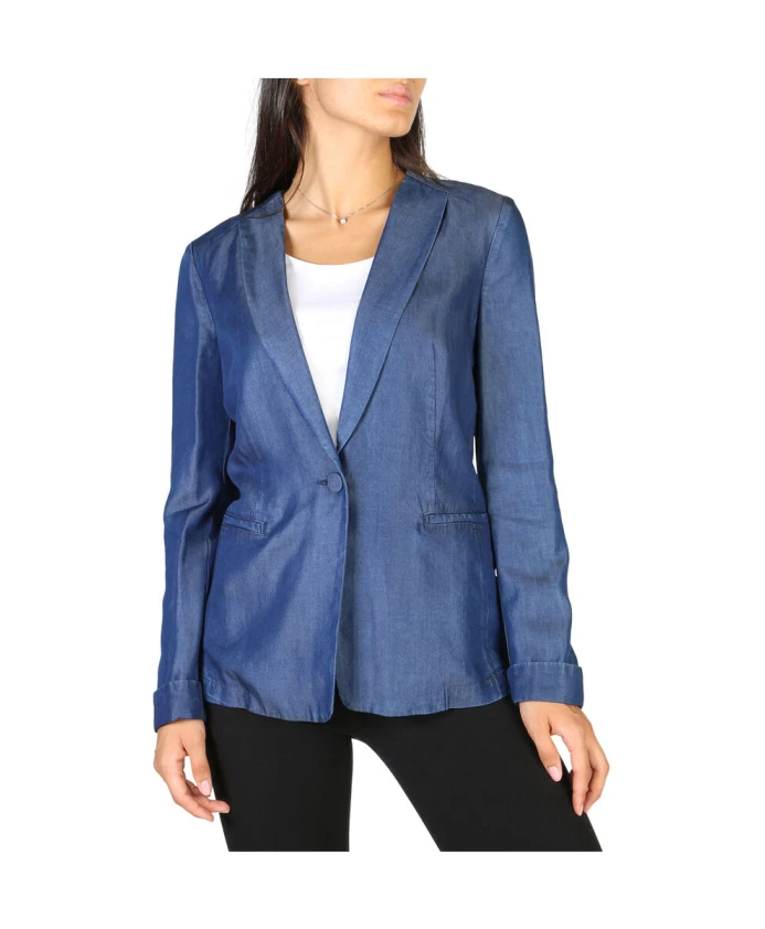 Представляем элегантный женский блейзер от Emporio Armani - стильное дополнение к вашему гардеробу. Изготовленный в Италии, этот блейзер с элегантным однотонным дизайном идеально подходит для осенне-зимнего сезона. Ключевые особенности: Синий | 100% другие волокна | Застежка на пуговицы | Два внешних кармана | Длинные рукава | Без подкладки | Посадка и размер: Легкий и удобный крой | Состав и уход: 100% другие волокна | Машинная стирка при 30°C