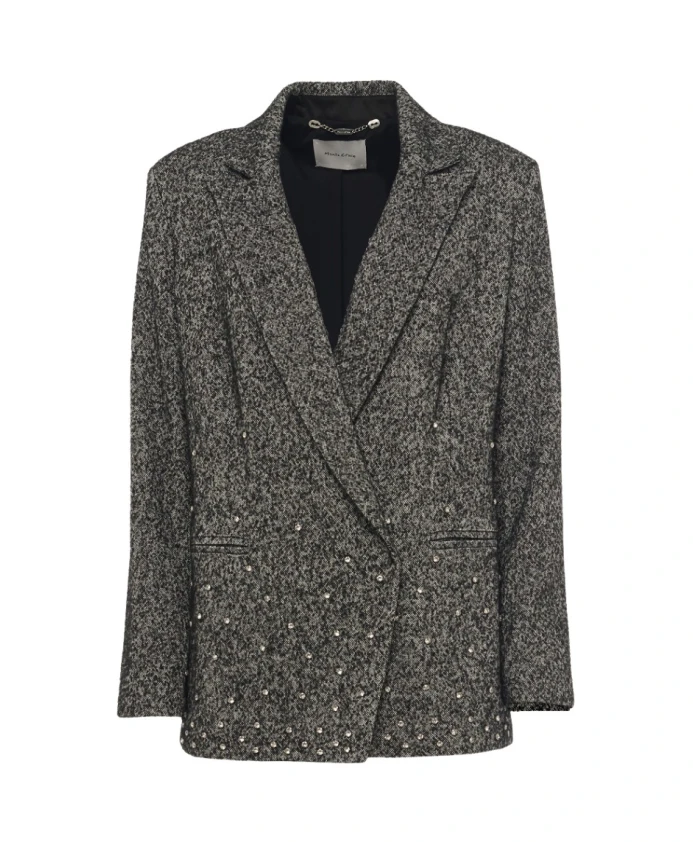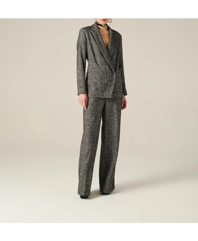 Твидовый блейзер Manila Grace с вручную нанесенными жемчужинами, которые ненавязчиво оживляют силуэт. Двубортный, приталенный фасон идеально подходит для изысканных дневных образов или особых случаев. Ключевые особенности: Черный | Черный | Твид | Двубортная застежка | Жемчужины, нанесенные вручную | Широкие лацканы | Двубортная застежка спереди | Структурированный силуэт | Размеры и посадка: Структурированный силуэт | Приталенный крой