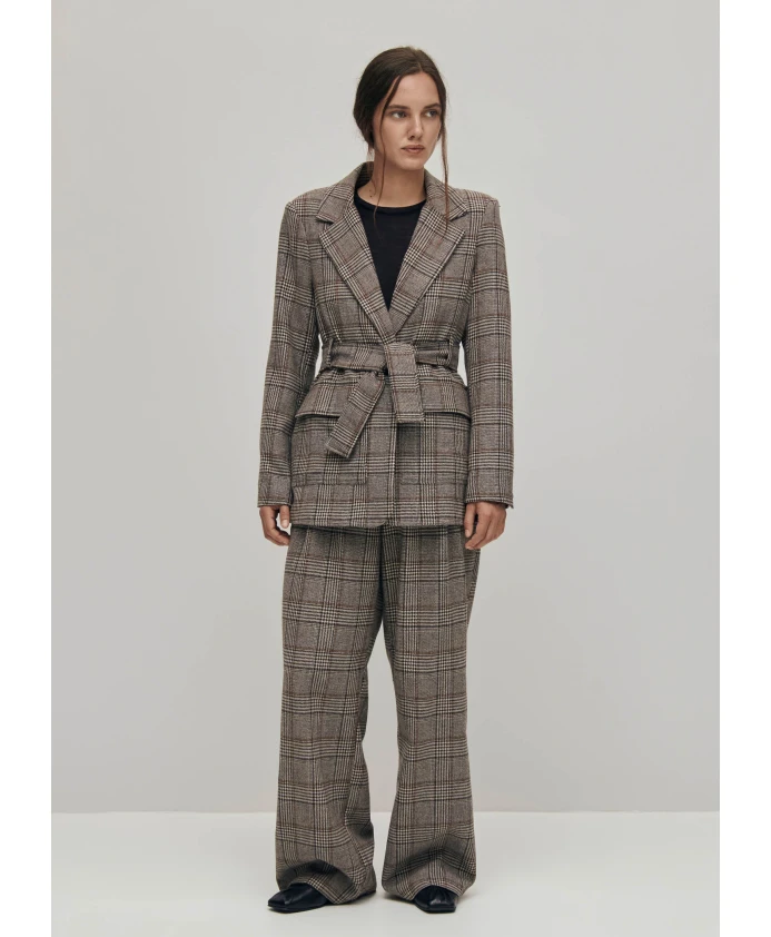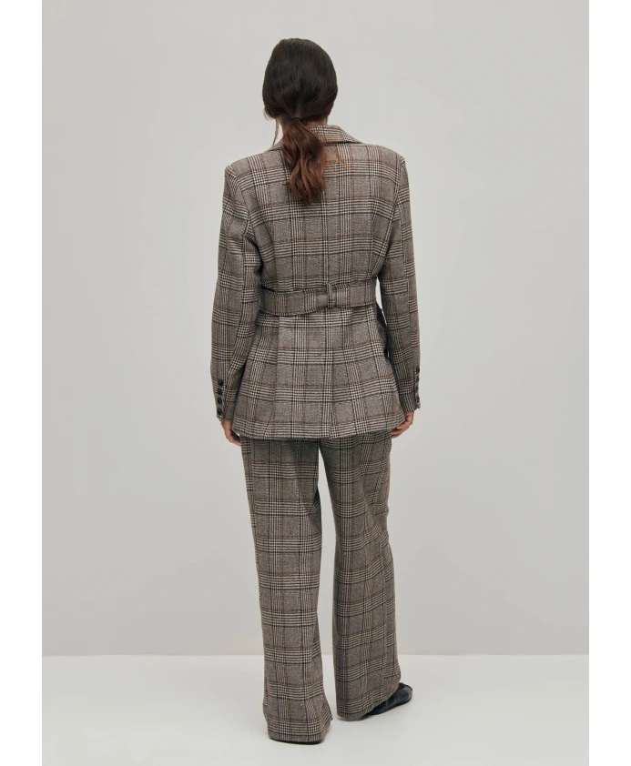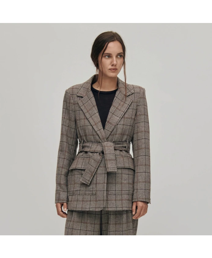 Коричневый клетчатый блейзер структурированного кроя. Модель Nagano - это коричневый клетчатый двубортный блейзер с широким поясом, подчеркивающим талию. Он имеет структурированный крой, широкие лацканы и большие передние карманы. Изготовленный из шерстяной смеси, этот блейзер создает классический и элегантный образ. Наша обувь, как правило, подходит по размеру. Если вы находитесь между размерами, мы рекомендуем выбрать меньший размер.